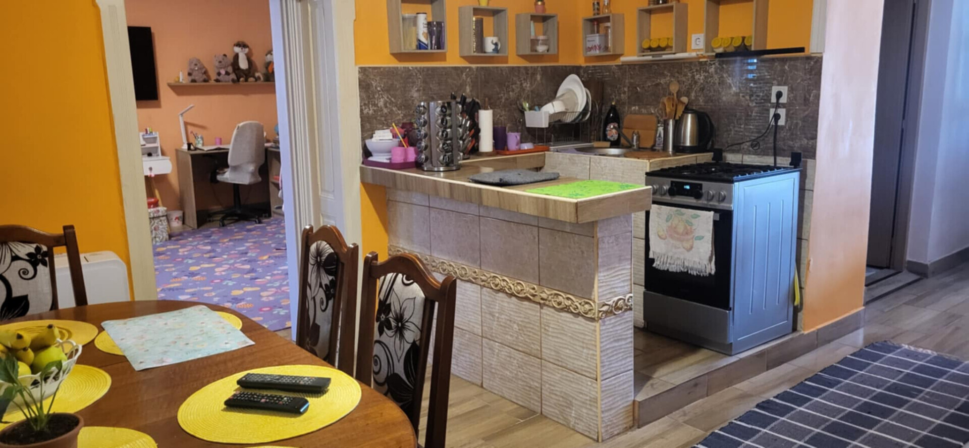 tágas, étkező-konyha, ahol kényelmesen elfér a család