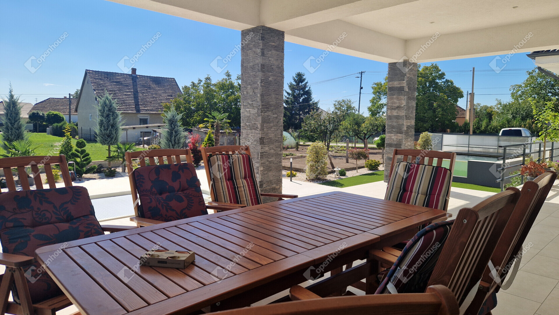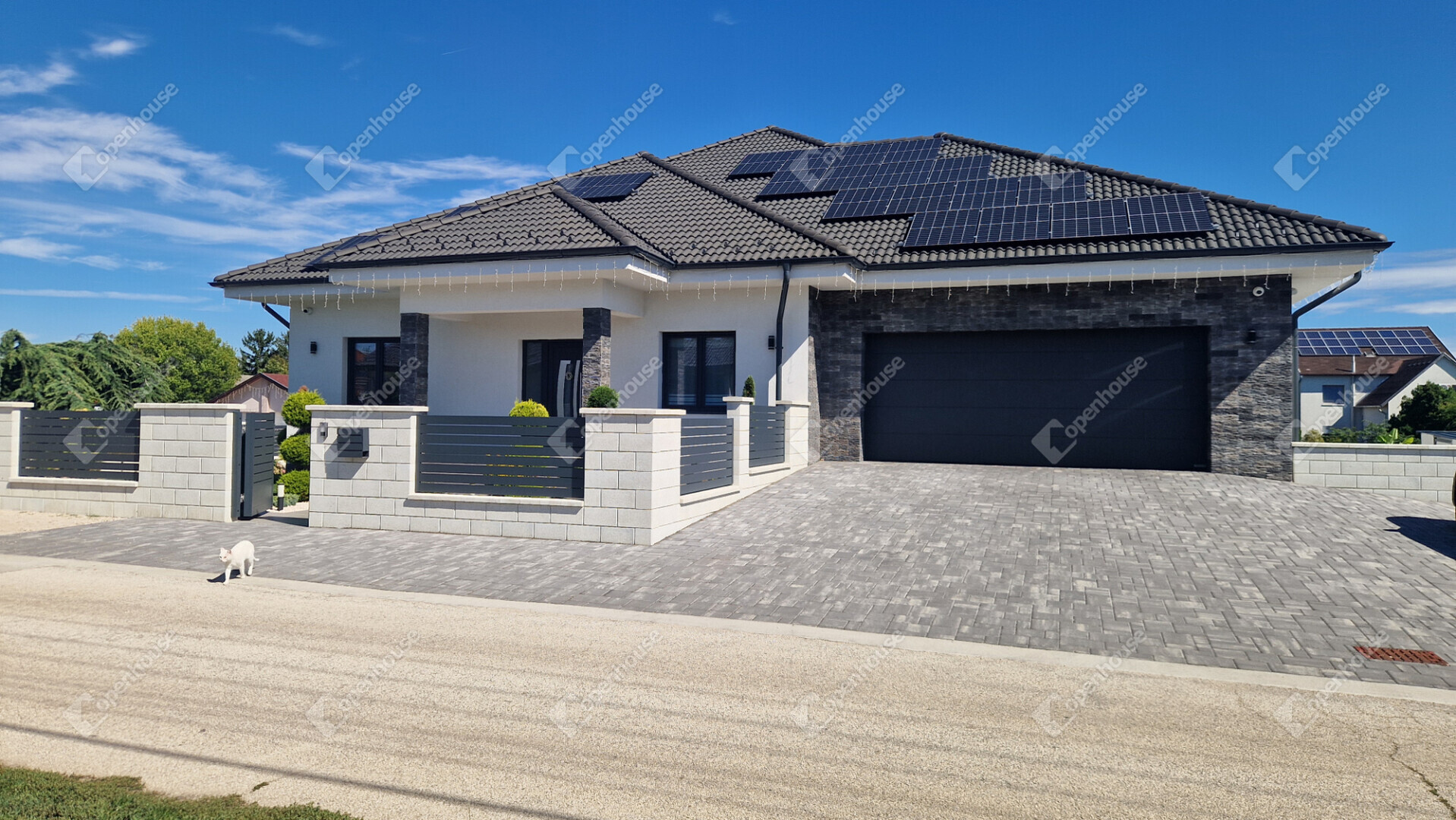 - Elegáns thermo blokk falazat, impozáns szeglemezes tetőszerkezet és időtálló antracit Bramac fedés