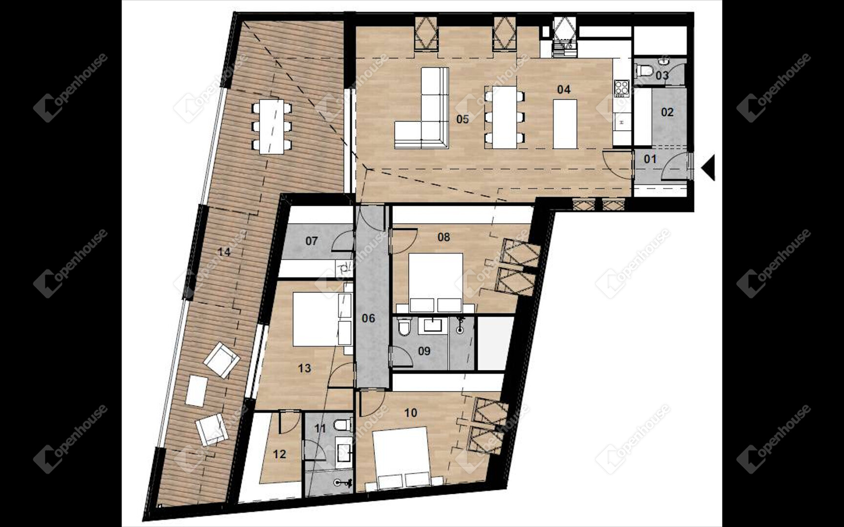 A 32–115 m² közötti, teraszos otthonok kialakítása a modern városi élet igényeihez igazodik. A belső terek tágasak, világosak, és lehetőséget kínálnak az egyedi elképzelések megvalósítására.