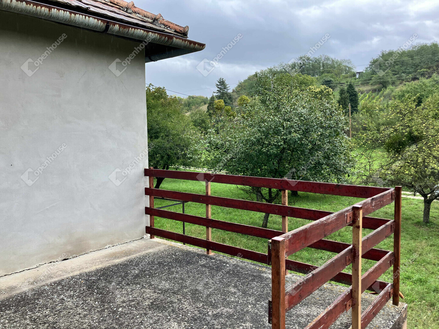 A bejárat előtt terasz található, ahonnan zöldre néző kilátás nyílik, akár egy reggeli kávézásra vagy pihenésre is tökéletes lehet.