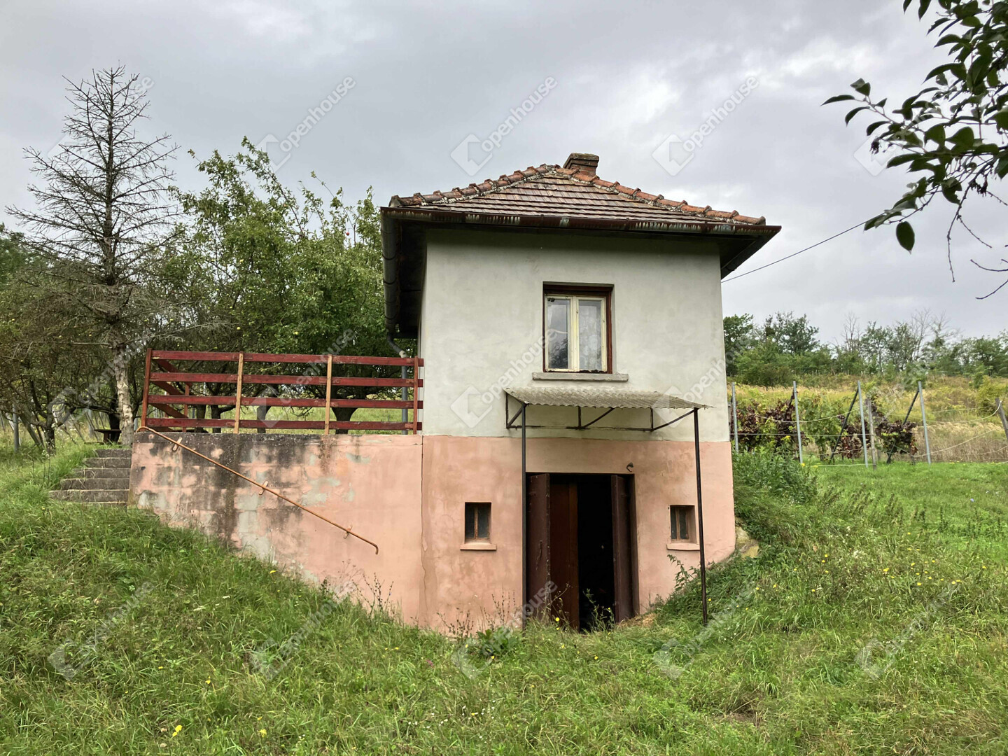 Az alsó szinten egy pince rész található , majd kivülről lépcsőn megközelítve az emeletre érve 2 kisebb helység került kialakításra.