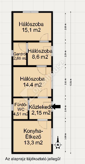 - 3 hálószoba, közlekedő, fürdőszoba-WC, konyha, kamra került kialakításra