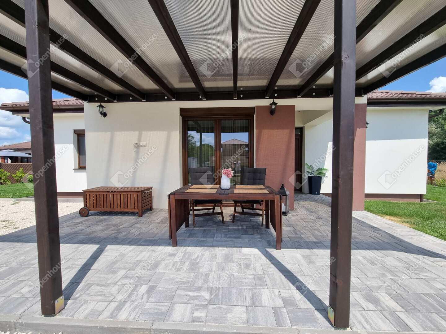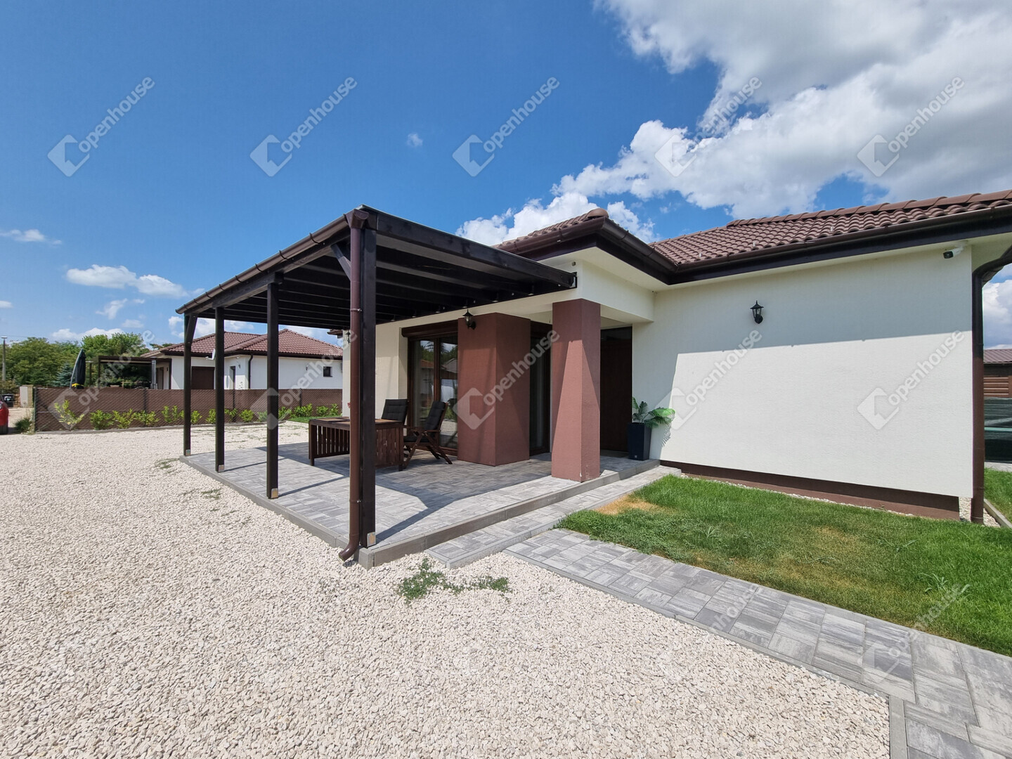 Kiváló hőszigeteléssel bíró új építésű, földszintes ház, 3 hálószobával, amerikai-konyhás nappalival, 2 fürdőszobával rendelkezik.