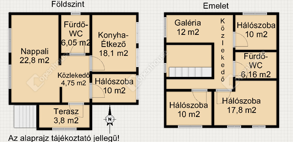 - az emeleten, amely galériázott 3 hálószoba kialakítással, fürdőszoba-WC, közlekedő