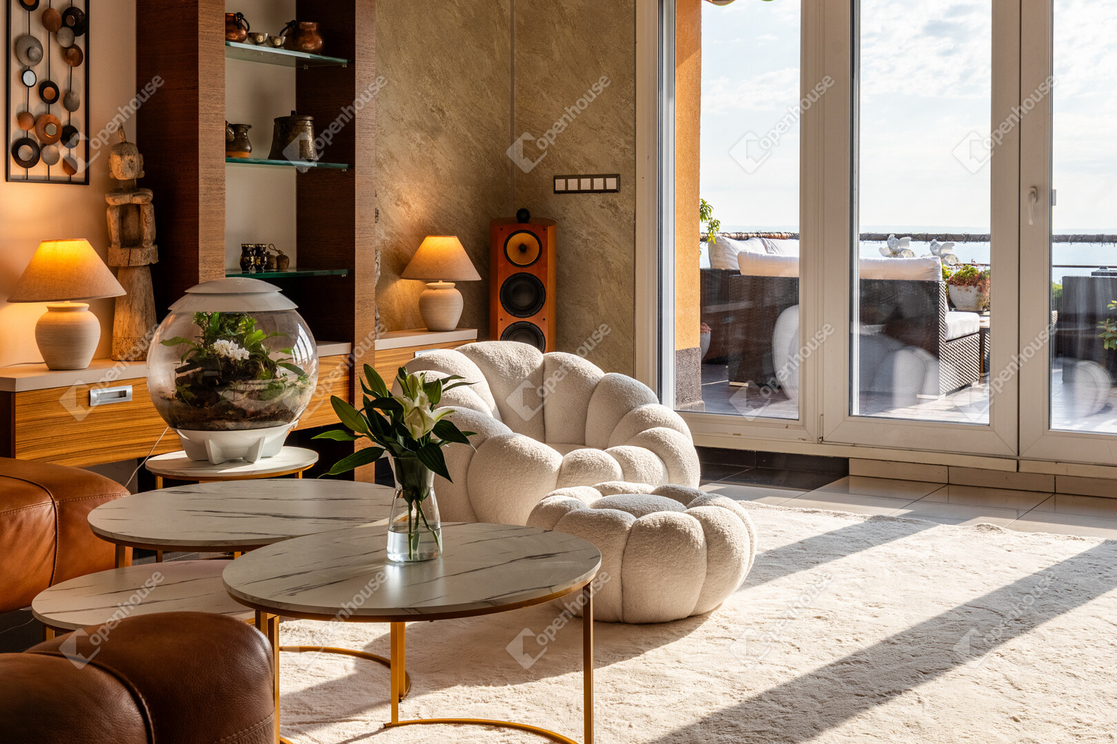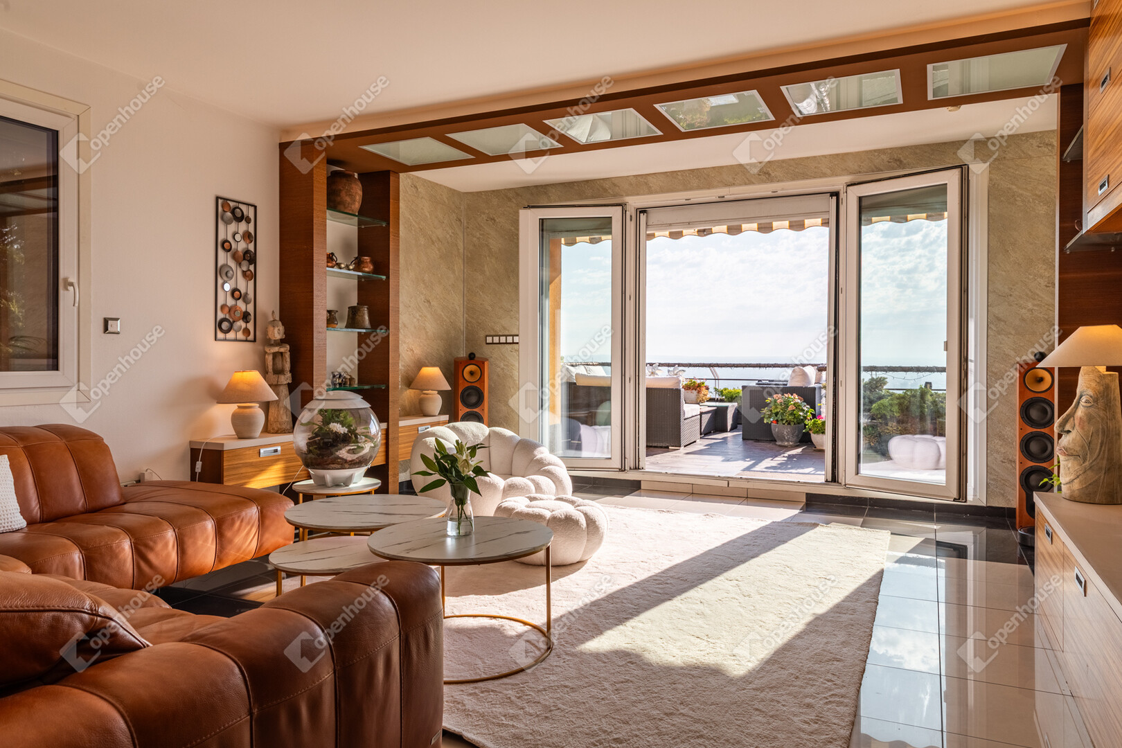 A hatalmas privát terasz ezen felül a mindennapok praktikus színtere is, megszámlálhatatlan lehetőséggel, melyet csak egy kert adhatna – azonban a kert esetében nem lehetne része az élménynek a lélegzetelállító panoráma, amely itt minden pillanatnak festői hátteret ad.