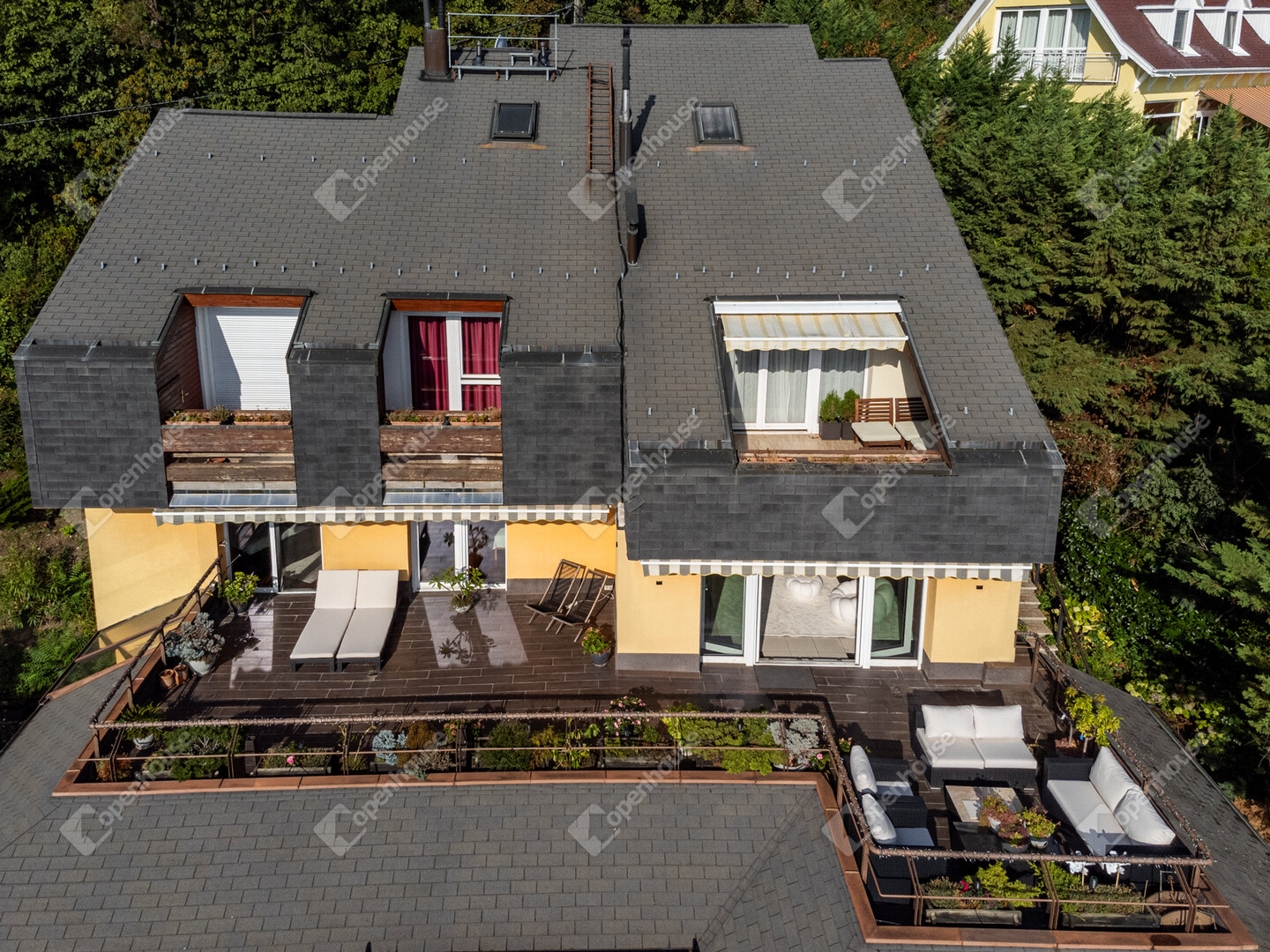 - Terasz: 58 m², két darab 4 méter széles, elektromosan vezérelhető napellenzővel