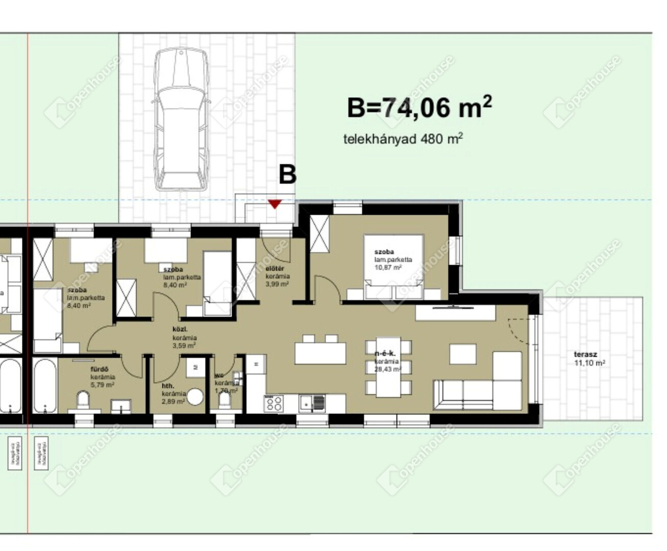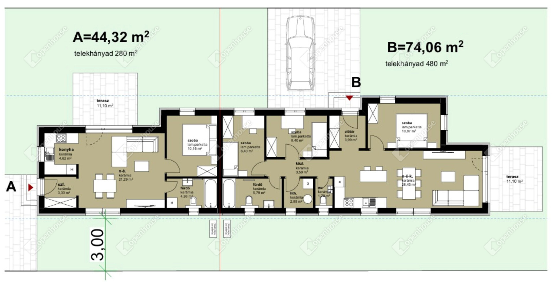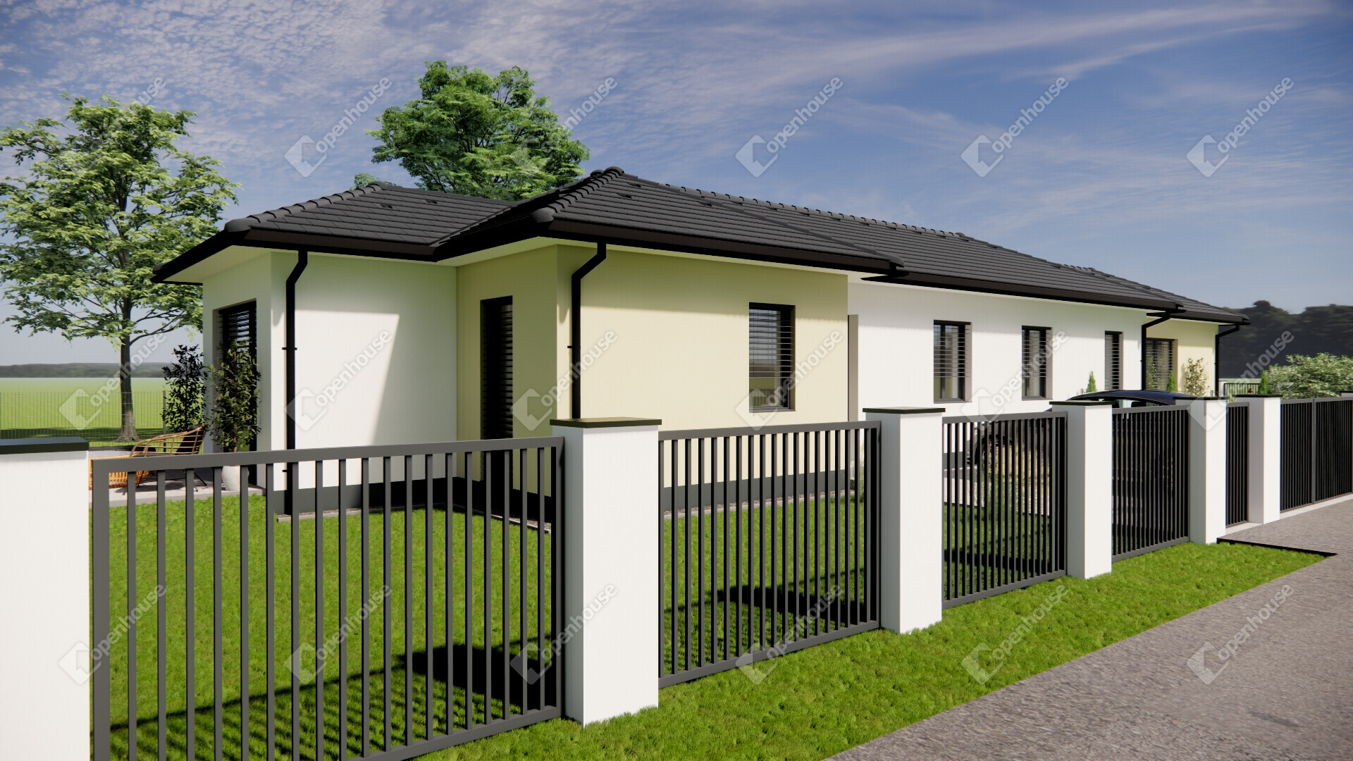 Az ikerház saroktelekre épül, önálló bejáratokkal, nem lesz közös út, közös terület. A ház 480 m² telken fekszik.