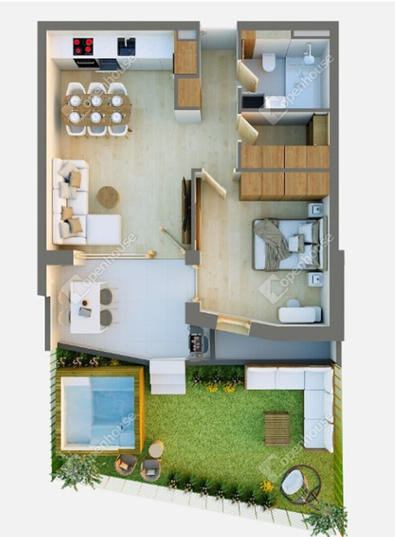 - A nappali privát kertkapcsolattal rendelkezik, ami 32 nm -es.