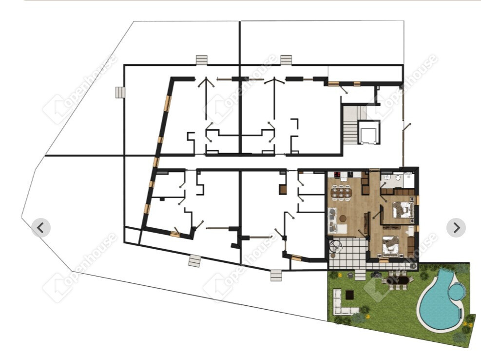 - A lakás 40 nm -es, nappali és 1 hálószobás, és közvetlen kertkapcsolattal rendelkezik.