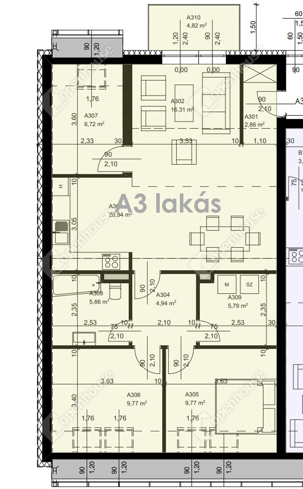 Alapterület: nettó 82 m² (bruttó 90 m²) + 4,8 m² erkély