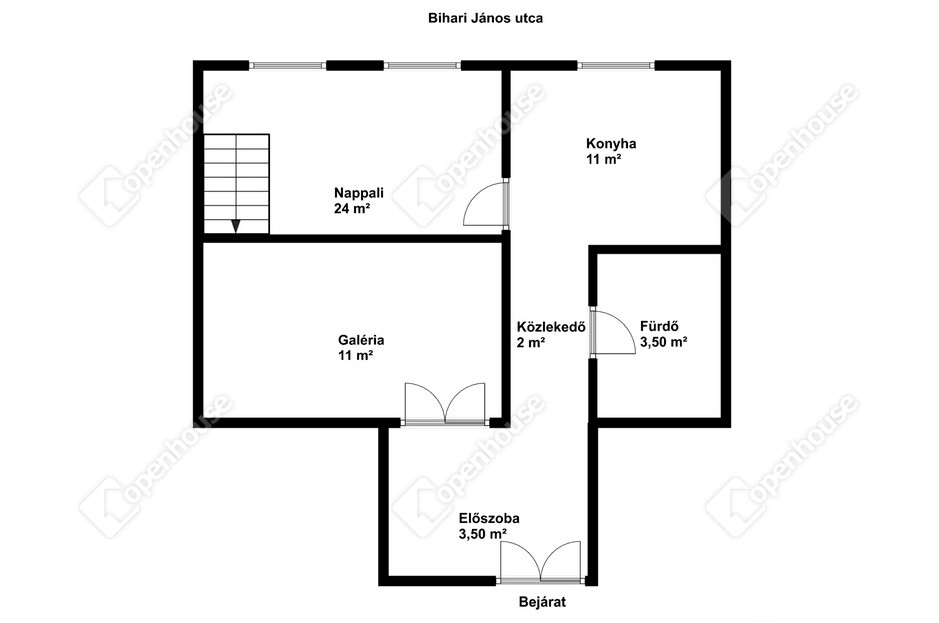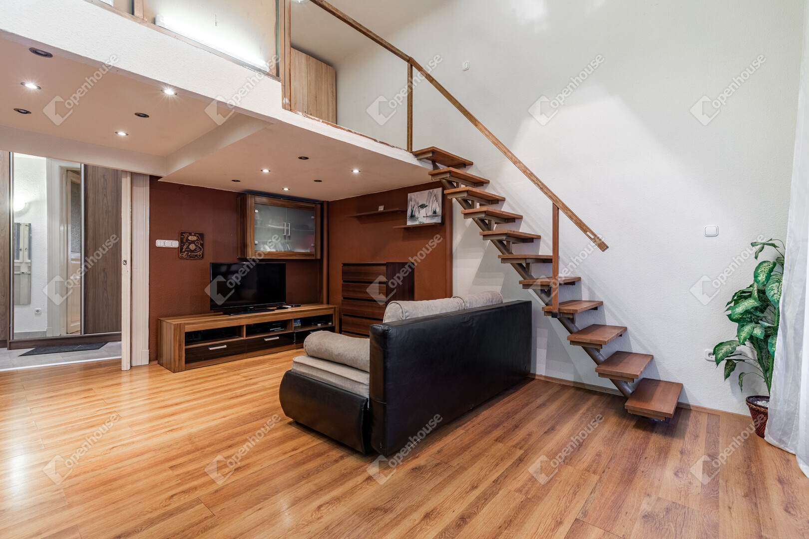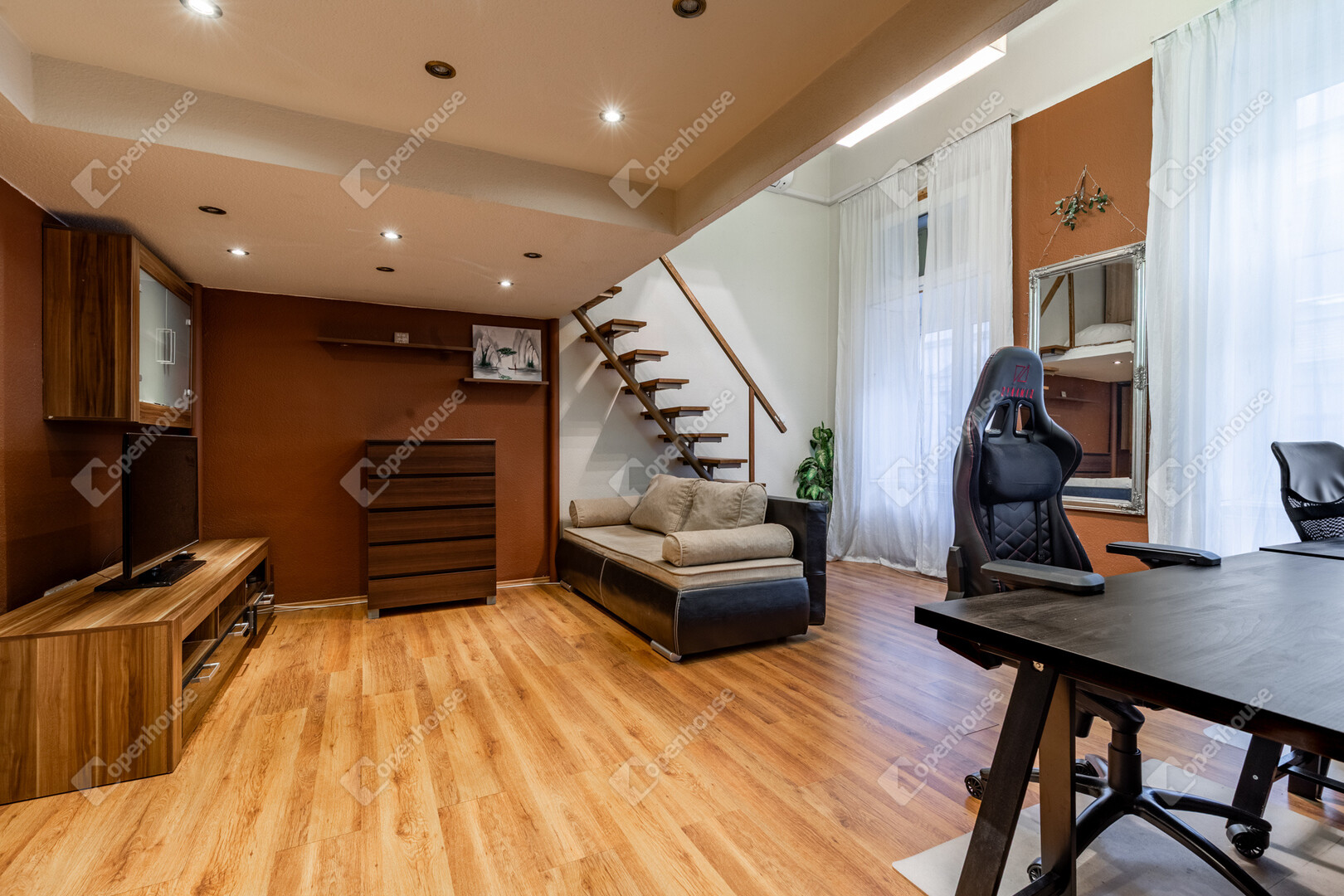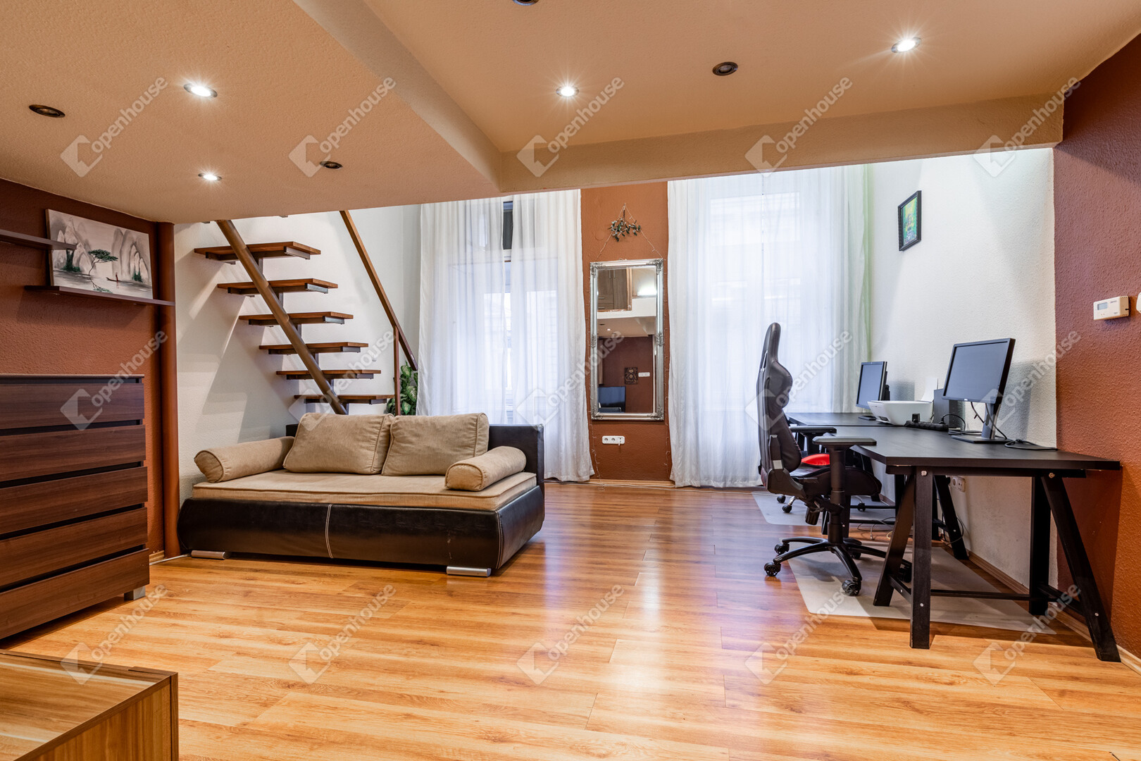 - Elosztás: tágas nappali galériával, ablakos konyha, fürdőszoba, előszoba