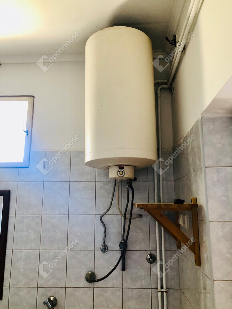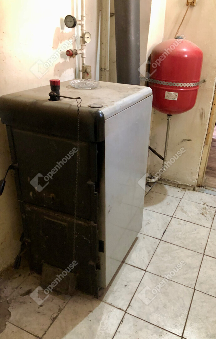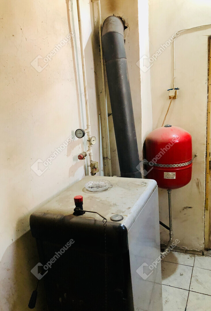 -A fűtést központi fűtés, fatüzelésű kazán radiátorokkal biztosítja a melegvizet villanybojler.