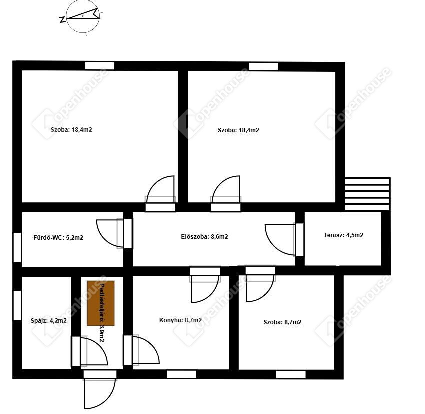 | Padlás | 3.80 m2 | Kőburkolat |