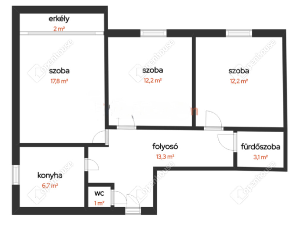 | Erkély | 2.00 m2 | Vinyl padlóburkolat |