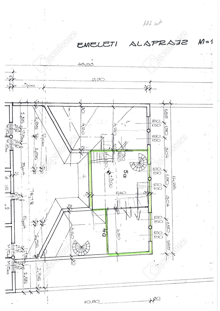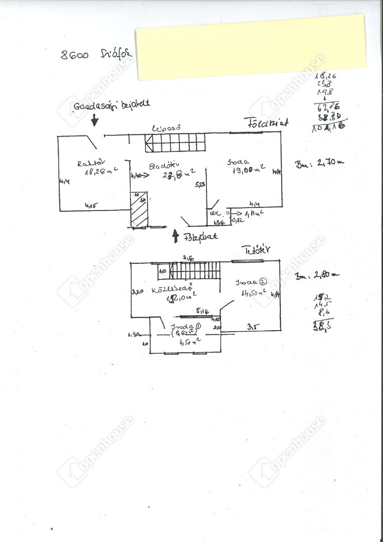 Jelenlegi kialakítás: 5 helyiség, teakonyha, WC, belső kétszintes elosztás