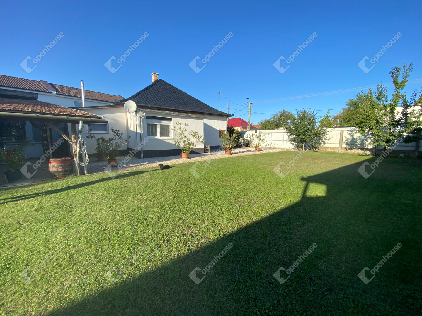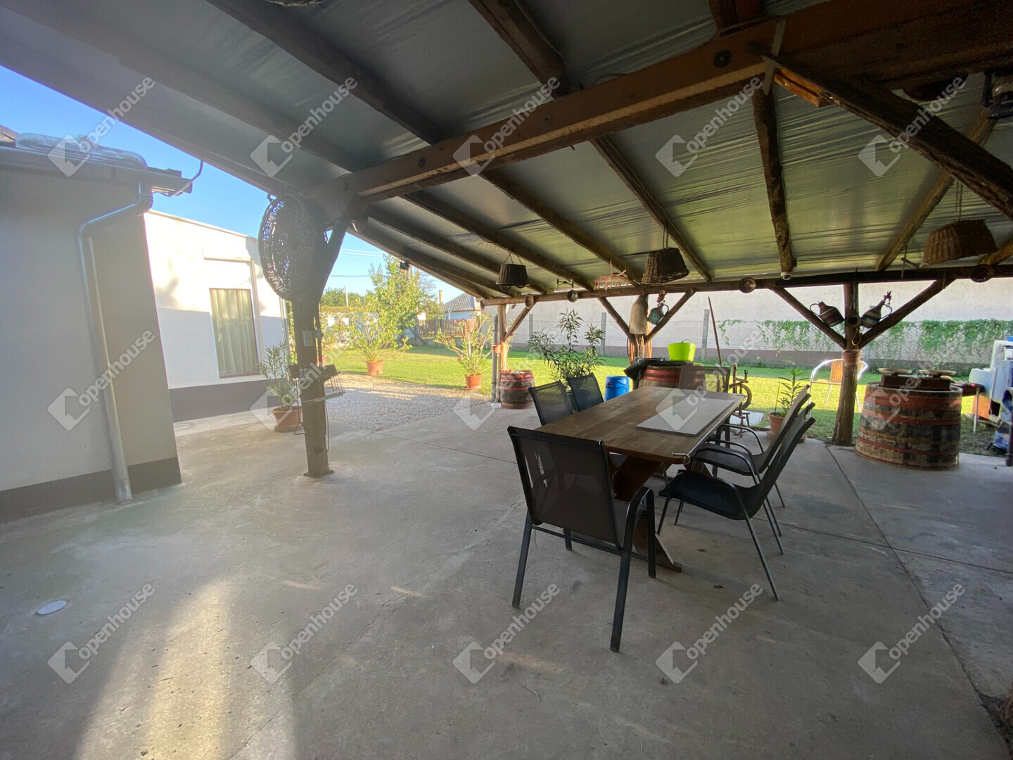 - A telken egy fedett terasz és tárolóhelyiségek kaptak helyet