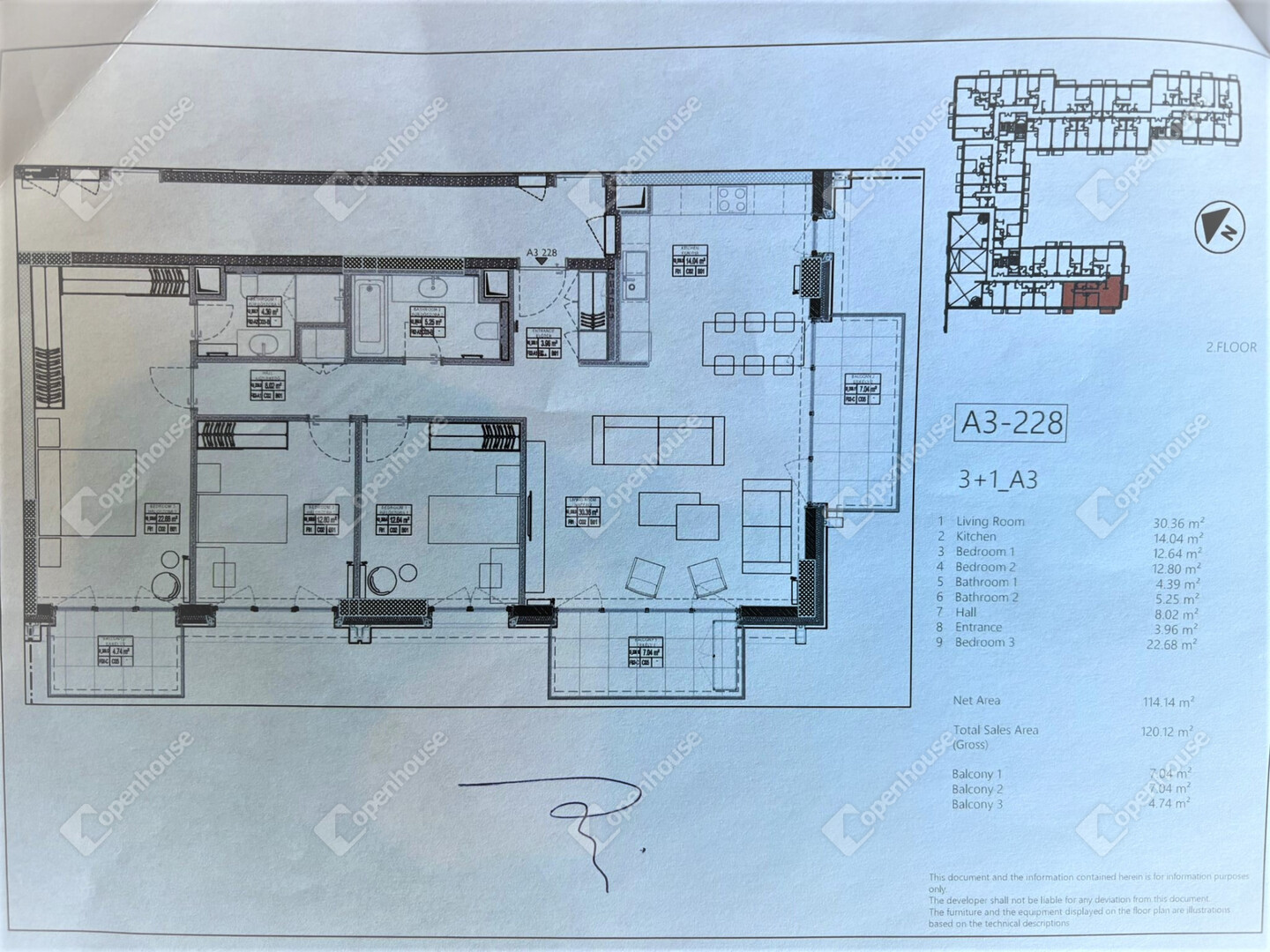 Ez a 114m²-es, természetes fényben úszó lakás, a hozzá tartozó 3 db nagy erkéllyel ideális választás saját otthonnak de akár értékálló befektetésnek.