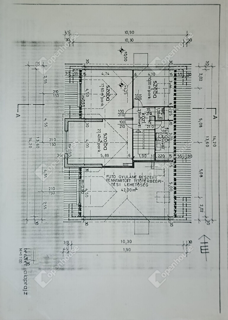 - A családi ház 690 nm-es telken , 230 nm-es tégla falazatú épület, pala tetővel.