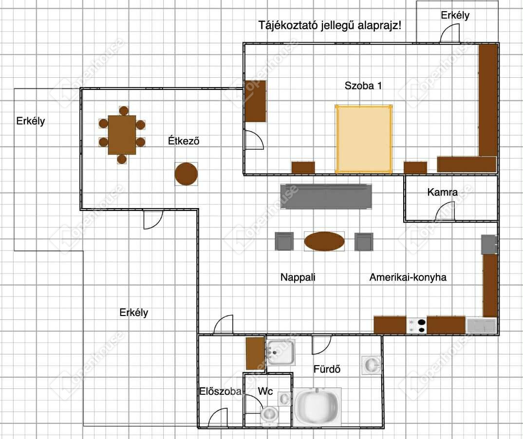| Szoba | 13.40 m2 | Laminált padló |