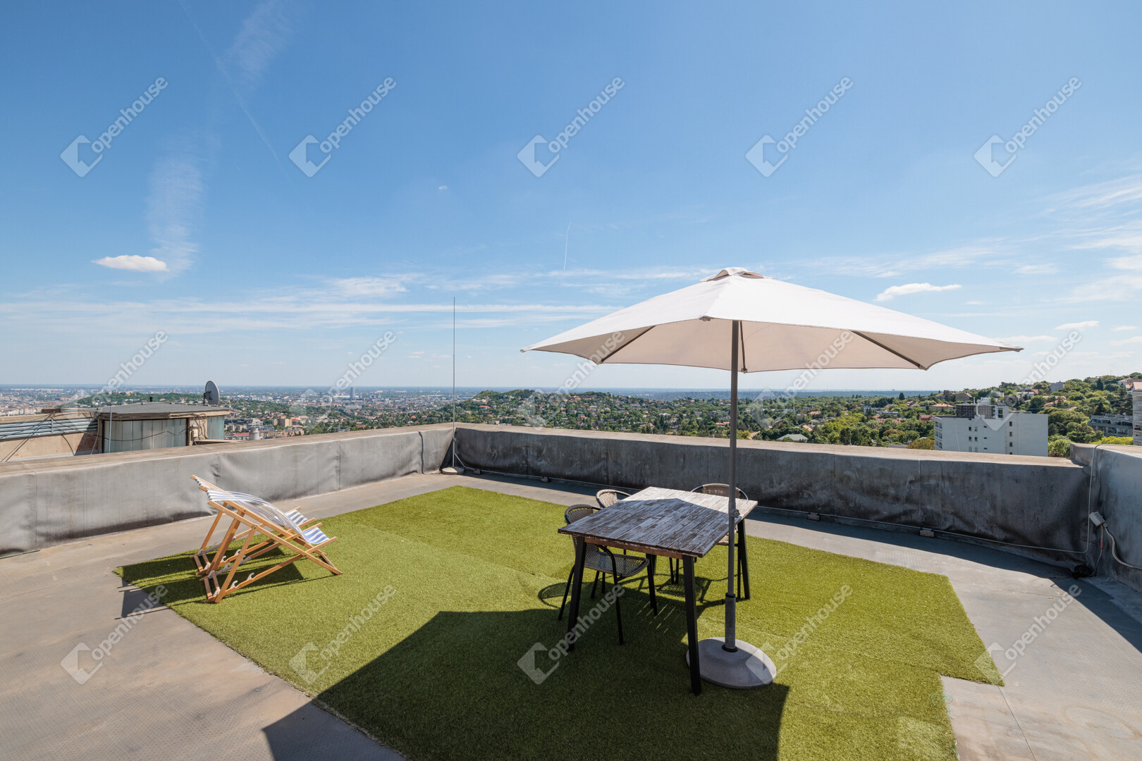 Az ingatlanhoz közös használatú, körpanorámás, járható, nagy tetőterasz is tartozik, ahonnan lenyűgöző panoráma nyílik a városra - tökéletes helyszín kikapcsolódáshoz a nap végén.