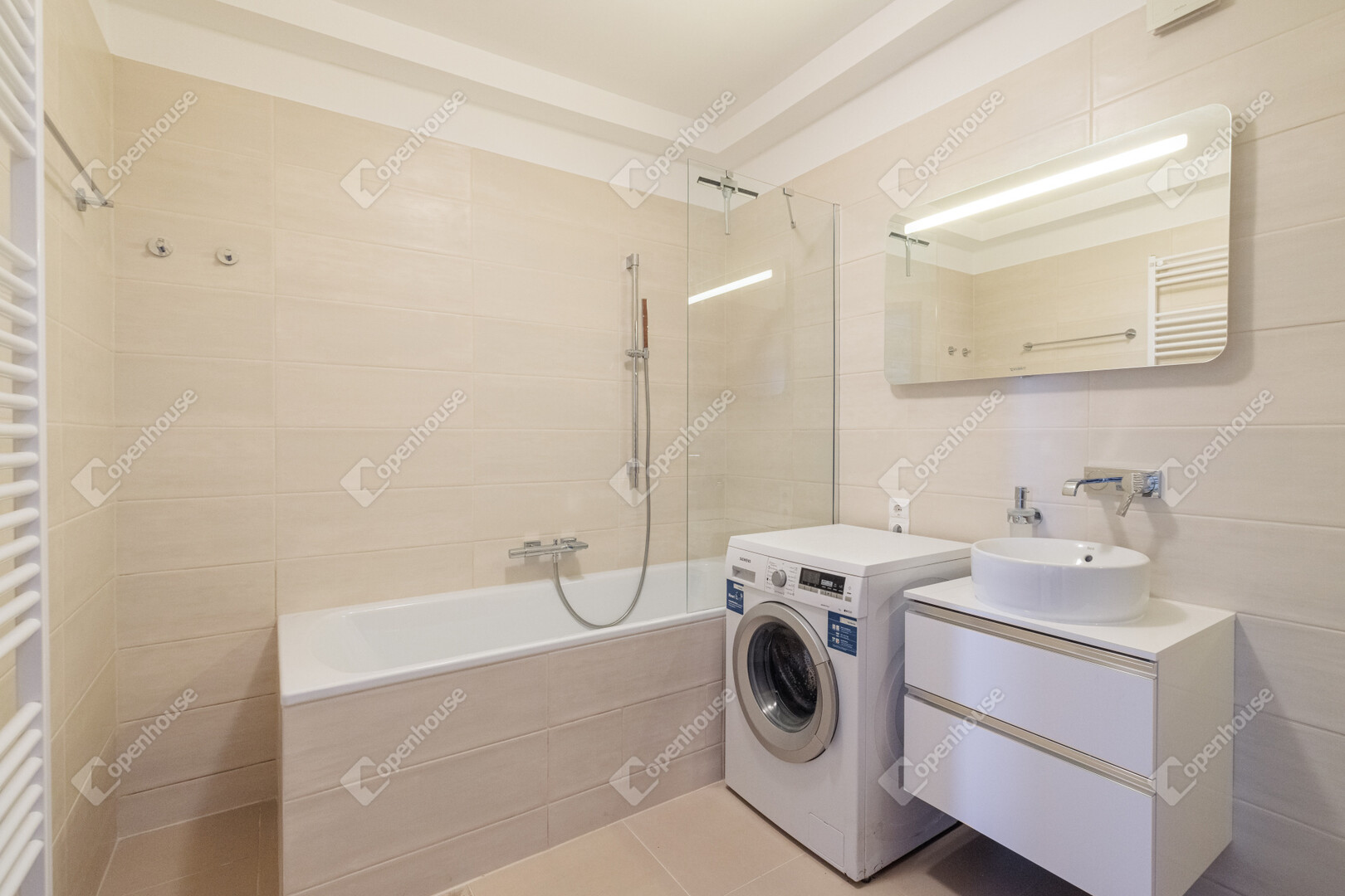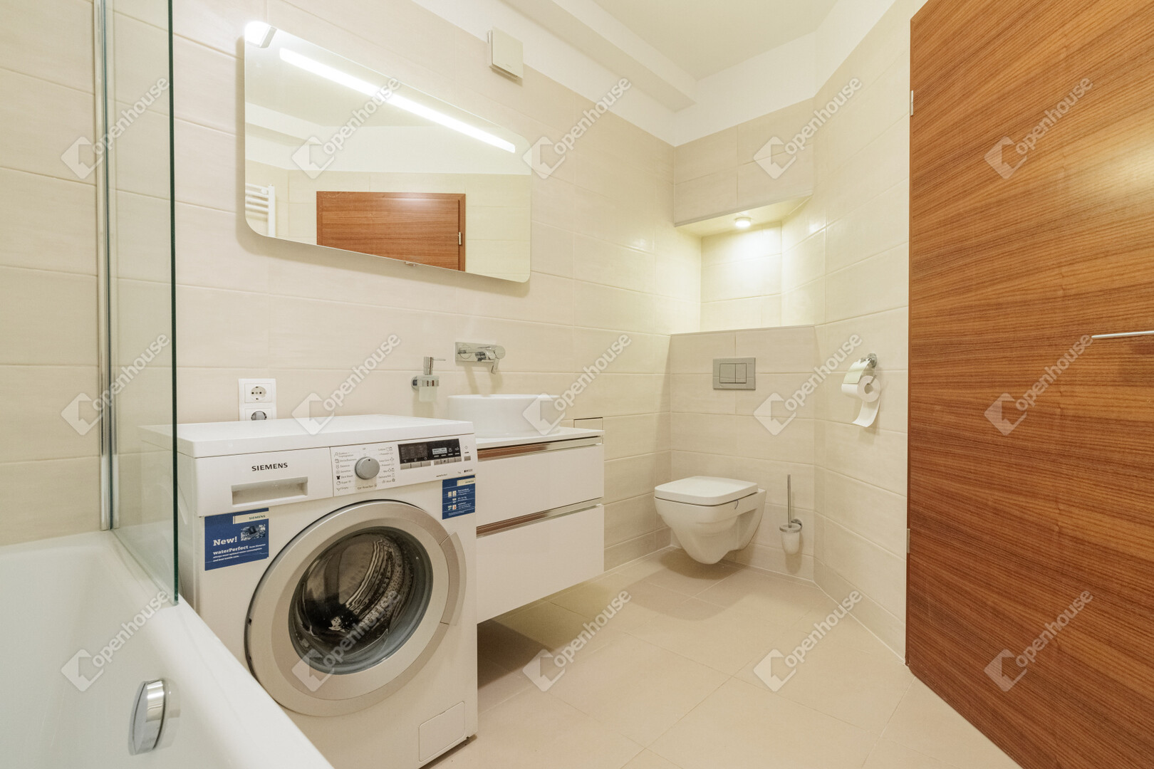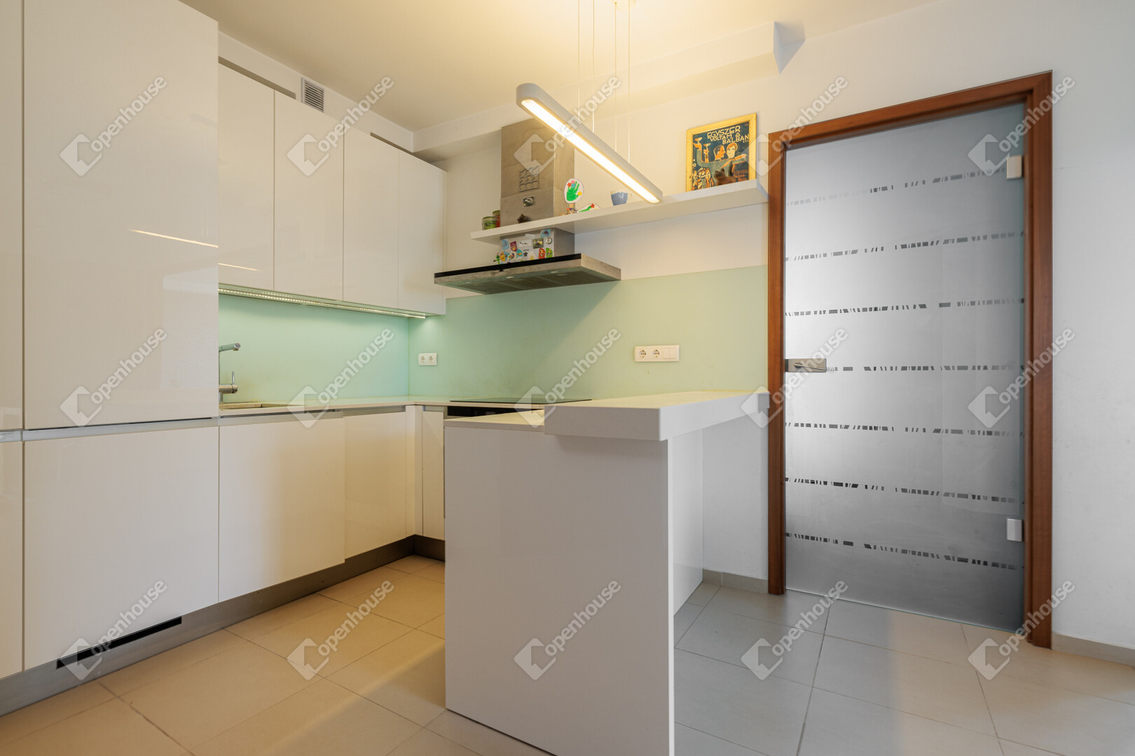 A lakást prémium minőségű anyagokkal újították fel a tulajdonosok saját részre: gránit konyhapult, sucupira fa parketta, magasfényű fehér Sykora konyhabútor és Siemens konyhagépek, illetve a Mitsubishi klíma mind az esztétikus, modern, és funkcionálisan is átgondolt megoldásokat tükrözik.