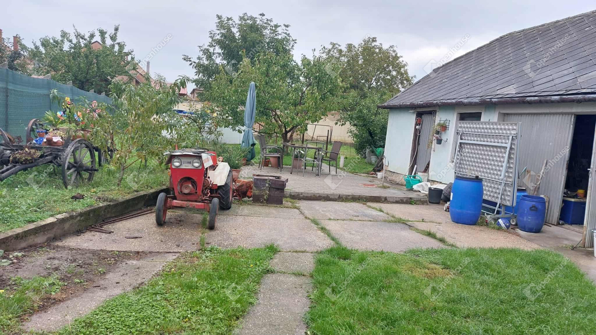 Az ingatlanhoz tartozó 589 m²-es telek bőséges lehetőséget kínál kertészkedésre, pihenésre vagy akár egy kis játszótér kialakítására, így a család minden tagja megtalálhatja a számára ideális helyet.