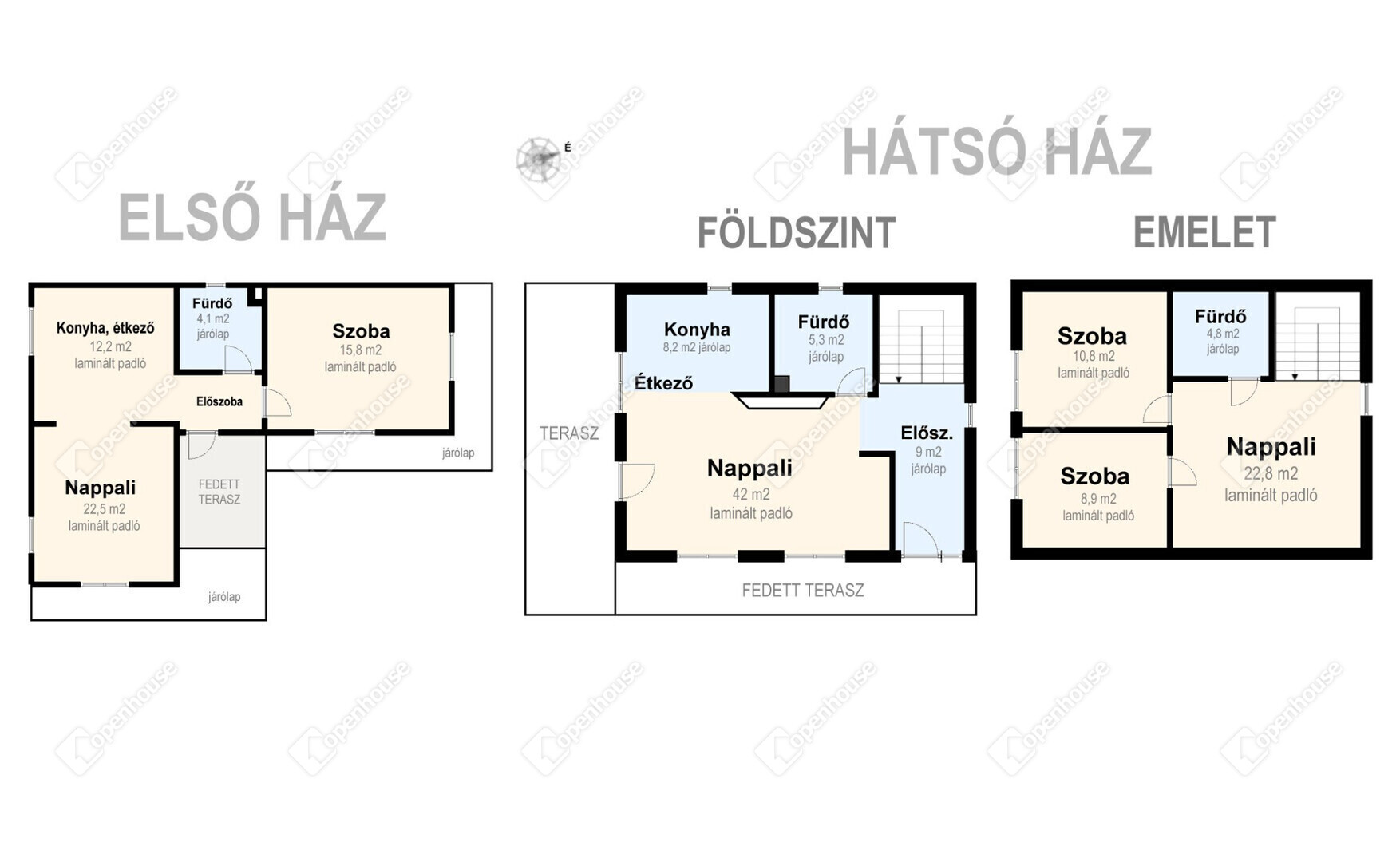 | Nappali | 21.30 m2 | Laminált padló |
