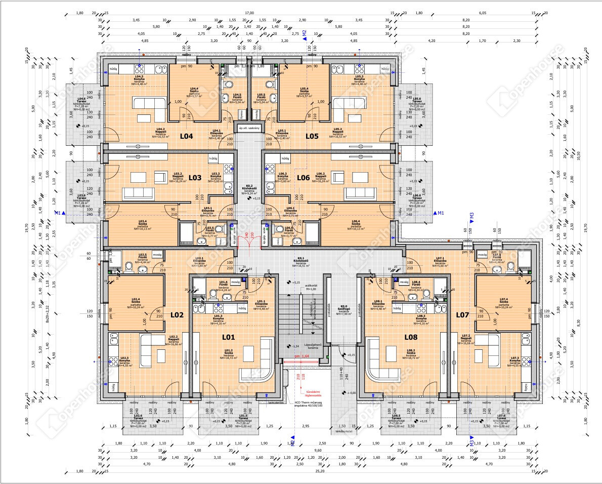 Szerkezeti jellemzők: Az épület főfalai alatt vasbeton sávalapok, a pillérek alatt beton pontalapok készülnek a statikai tervekben meghatározott acél és betonminőségekkel. A külső főfalak PTH30 N+F Rapid Dryfix (vagy ezzel egyenértékű) égetett agyag falazóelemekből készülnek. A lakások közötti belső főfalak LKF20 Leier vasbeton kéregfalak, melyek a statikai tervekben meghatározott minőségű betonnal kerülnek a helyszínen kibetonozásra. A belső válaszfalak PTH10 N+F Rapid Dryfix égetett agyag falazóelemekből készülnek. A tervezett födémek monolit vasbeton lemezfödémek 20 cm szerkezeti vastagsággal. Az erkélyek konzolos szerkezetei Schöck Isokorb hőhídmegszakító elemekkel kapcsolódnak a födémlemezekhez.