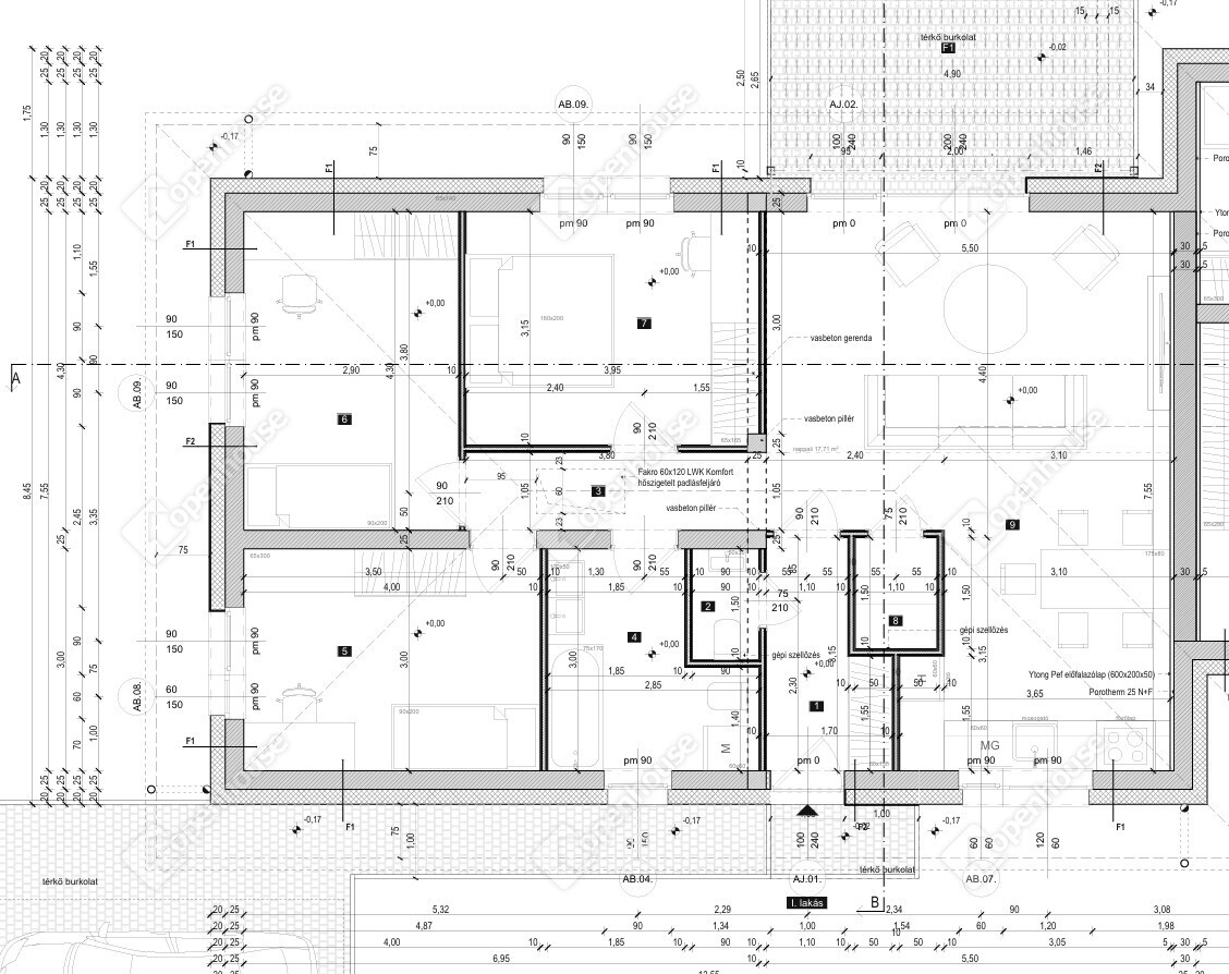 Az 1-es lakás főbb paraméterei: