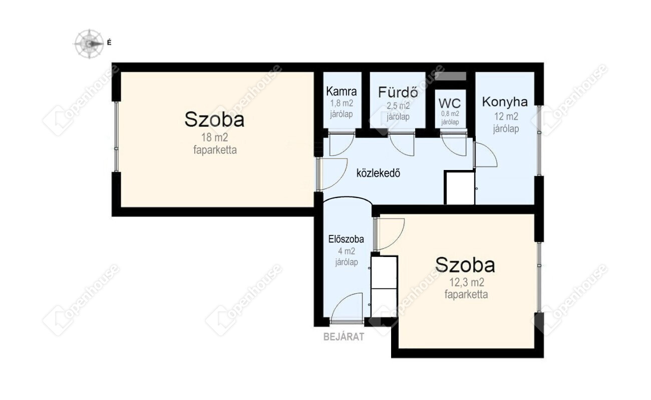 | Szoba | 12.30 m2 | Faparketta |