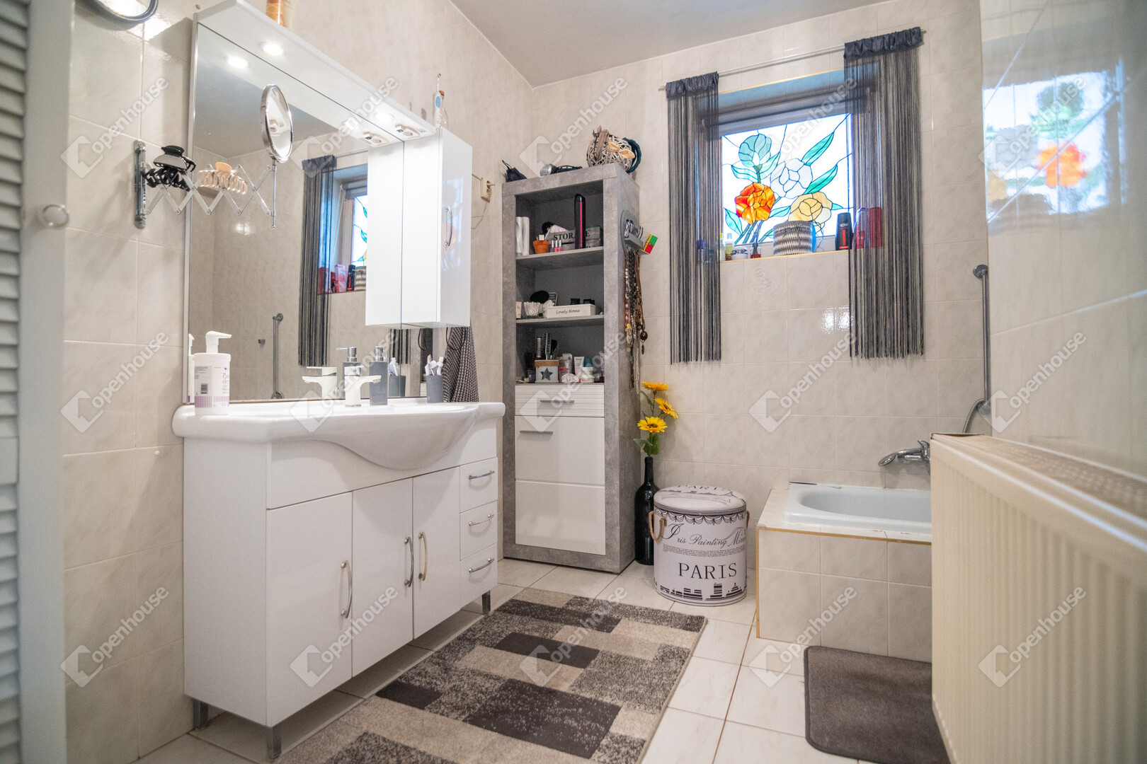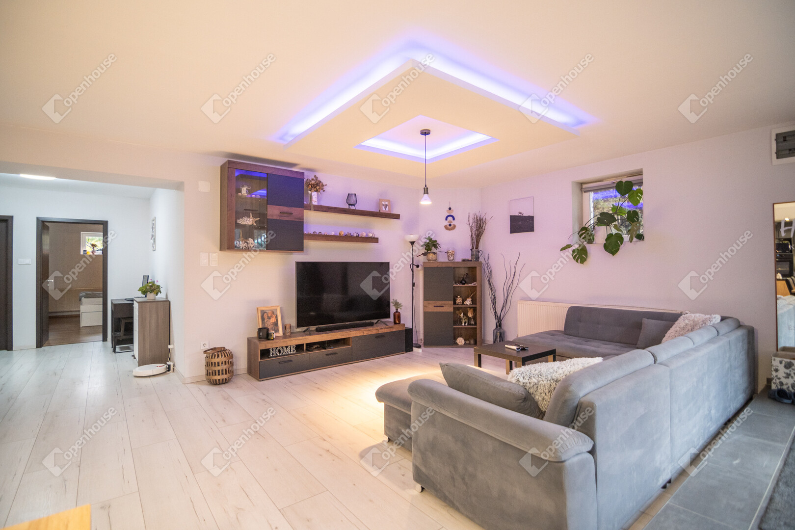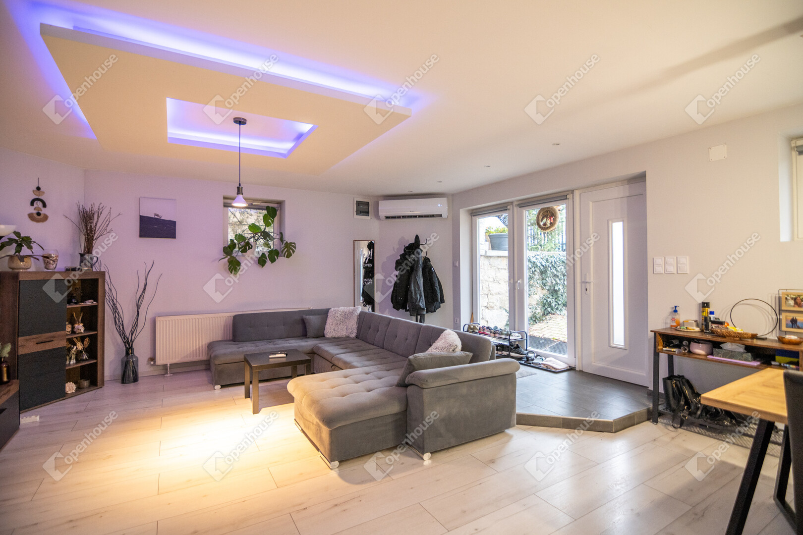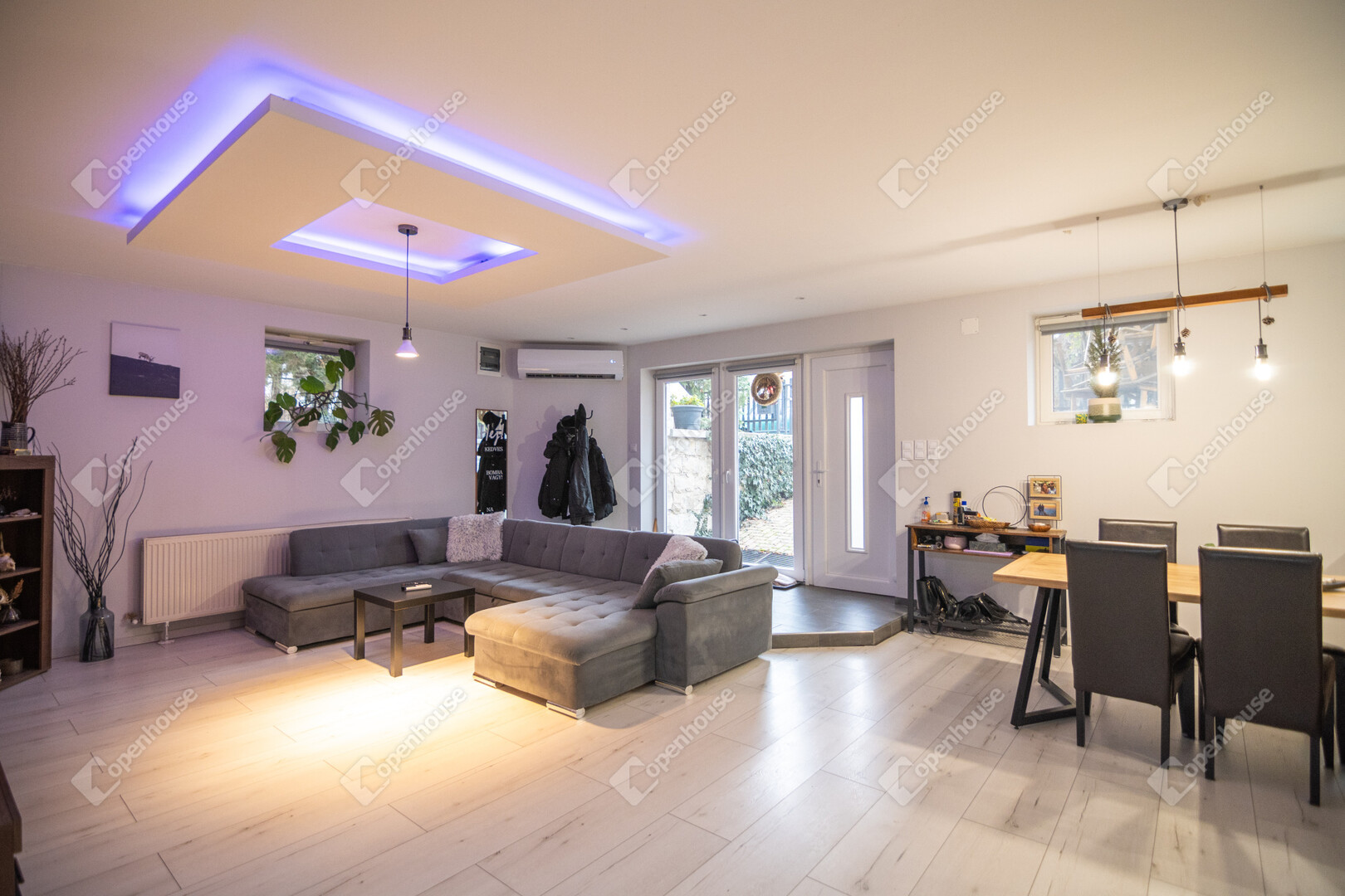 A házhoz tartozik még egy külön, 100 m²-es félszuterén szint, amely kiválóan használható: