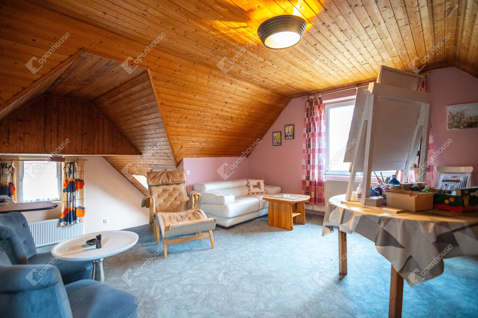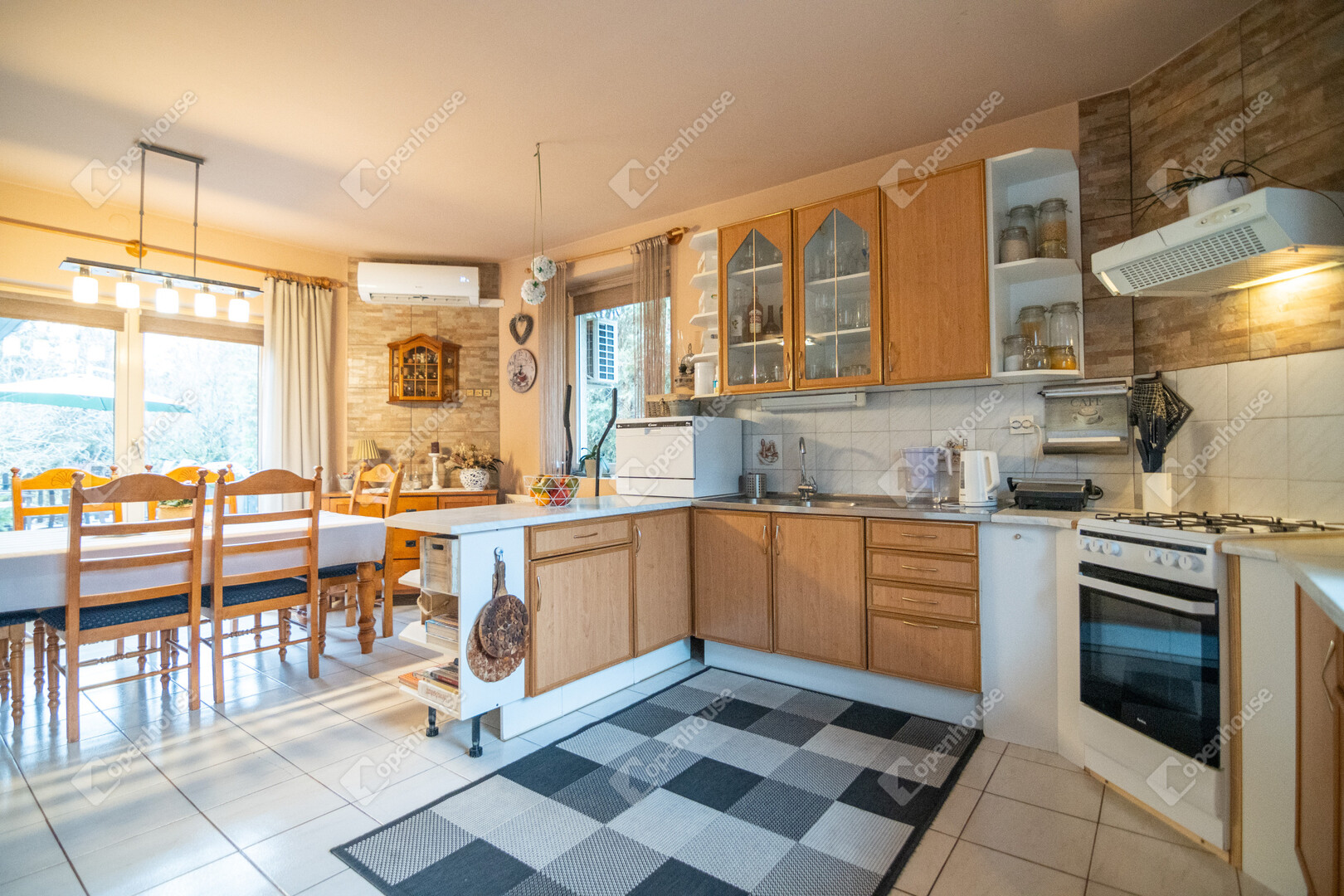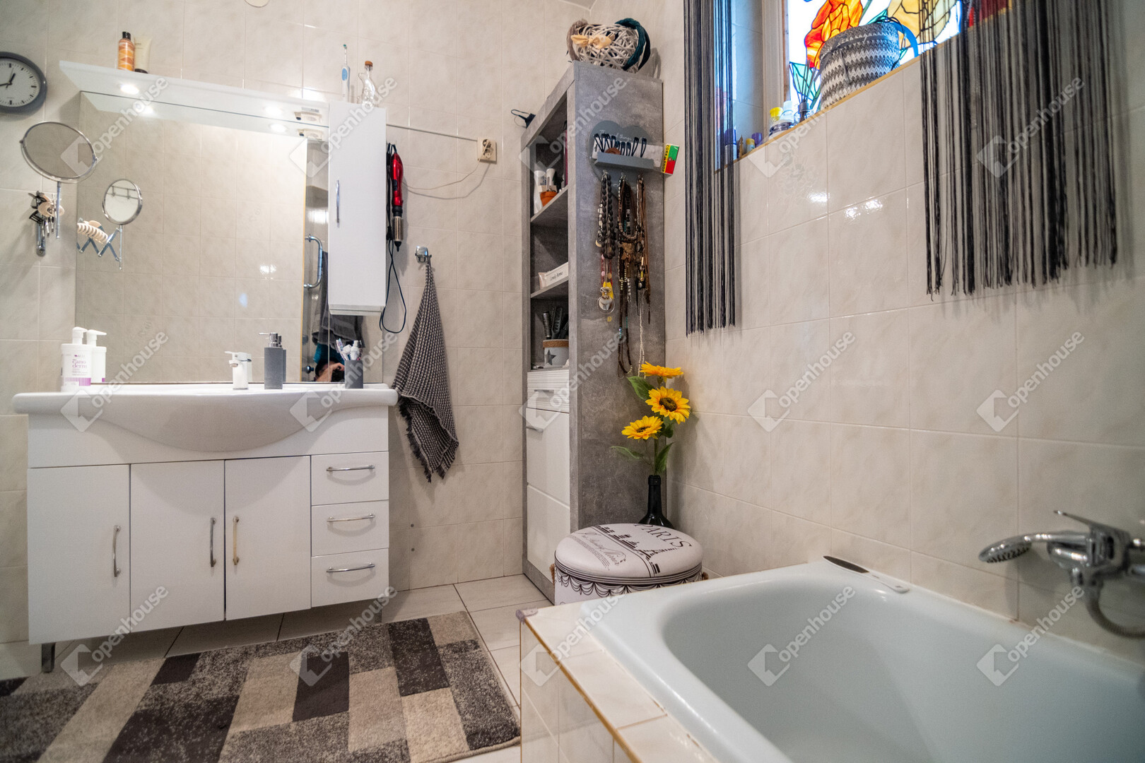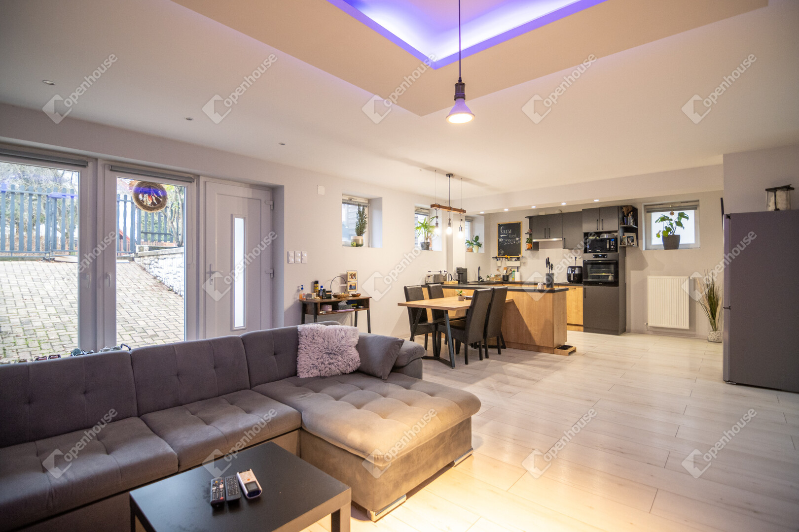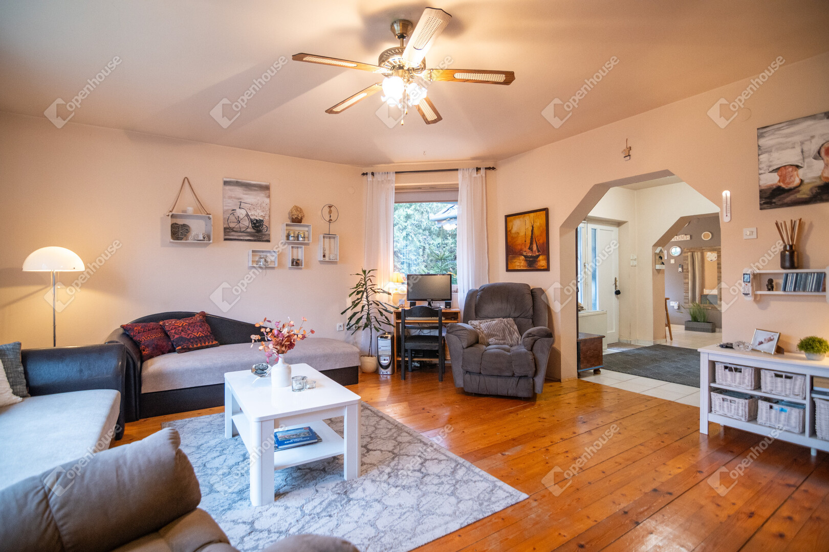 A házhoz tartozik még egy külön, 100 m²-es félszuterén szint, amely kiválóan használható: