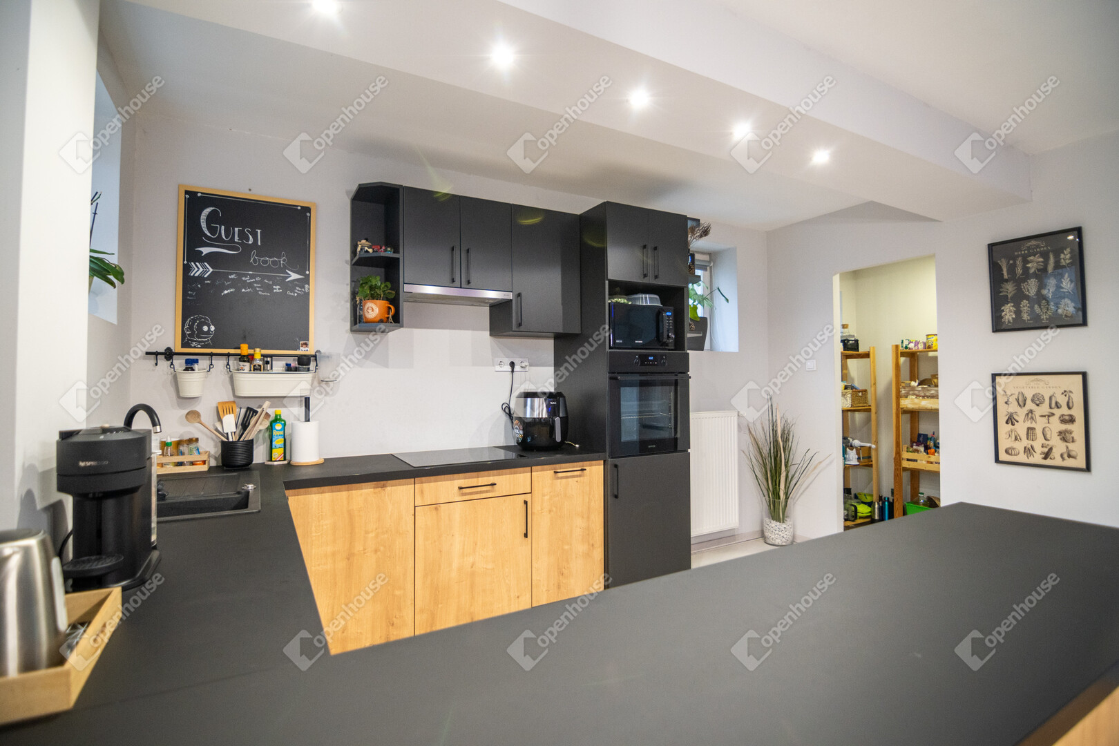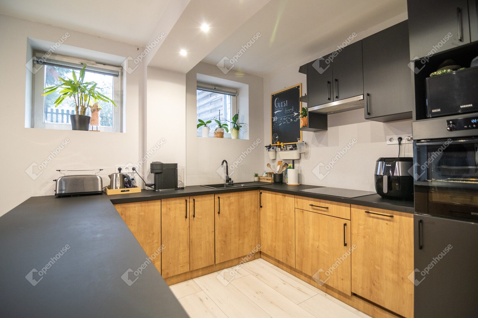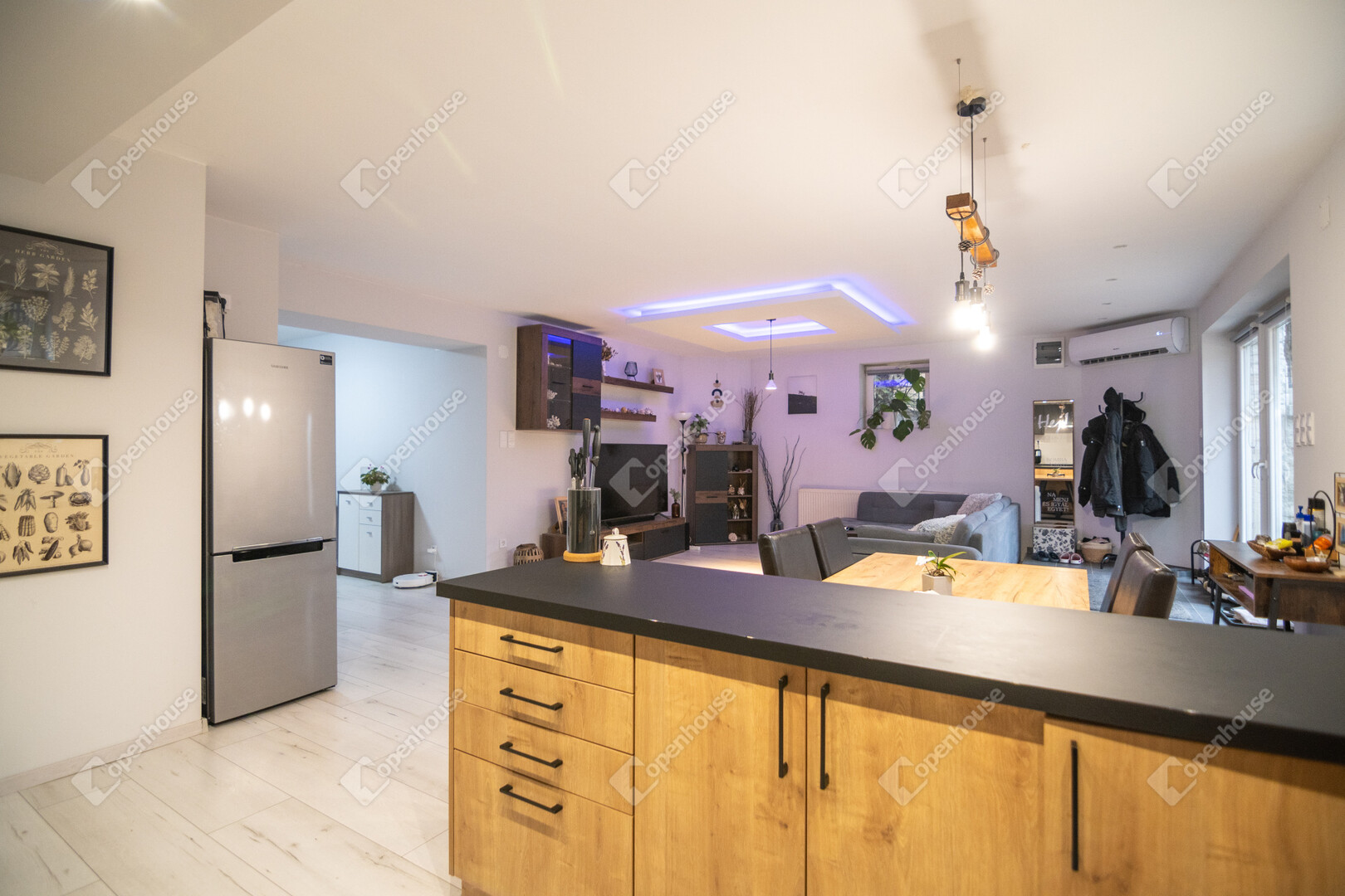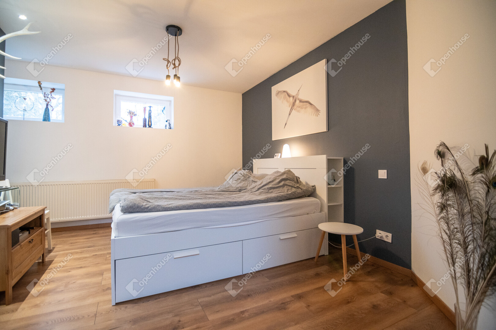 A házhoz tartozik még egy külön, 100 m²-es félszuterén szint, amely kiválóan használható: