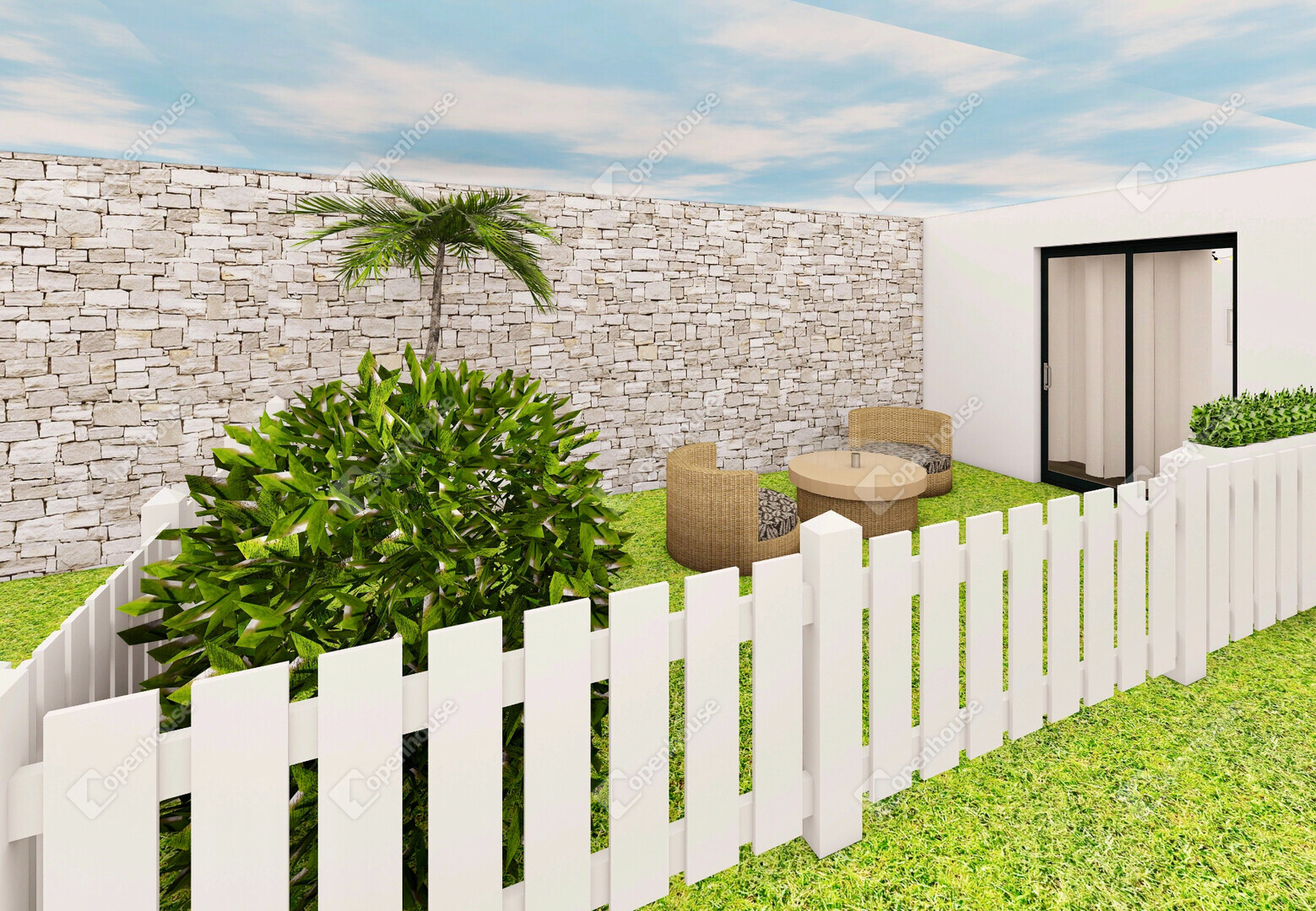 • Füvesített és parkosított udvar, melyben elhelyezésre kerül egy esővíz-gyűjtő rendszer, ami a zöldterület