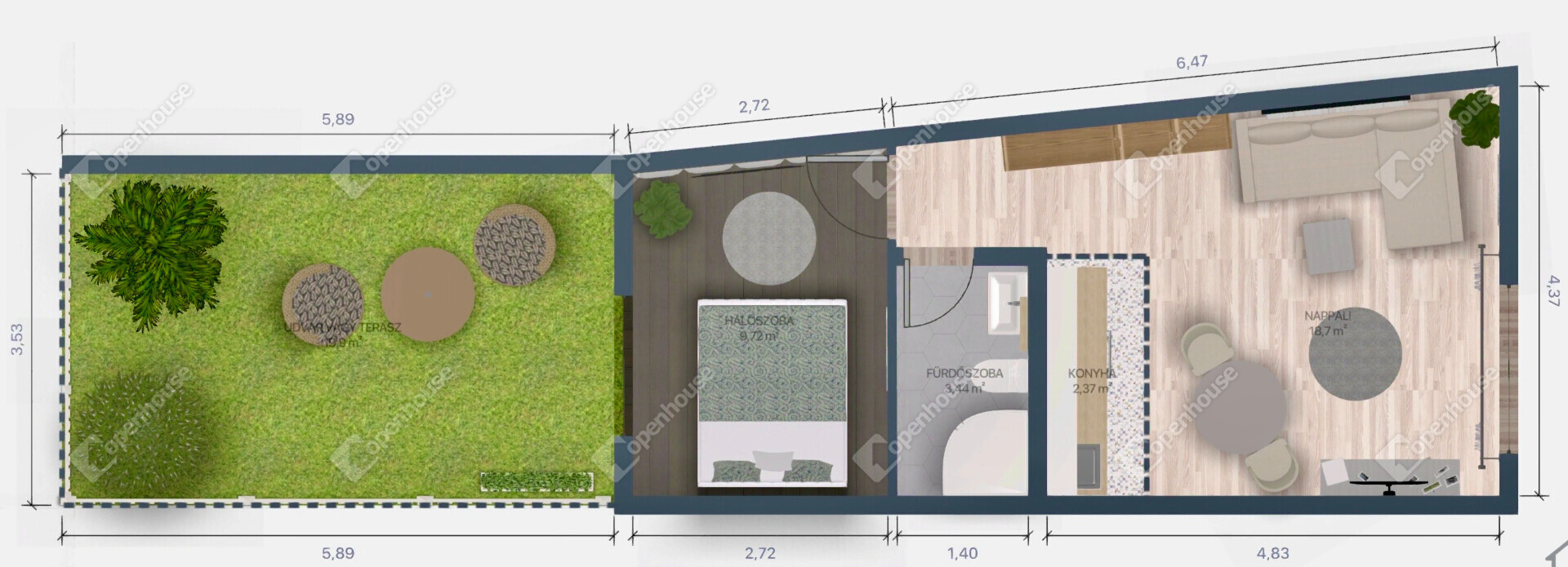 34,82 m2+20 m2 saját kertrész