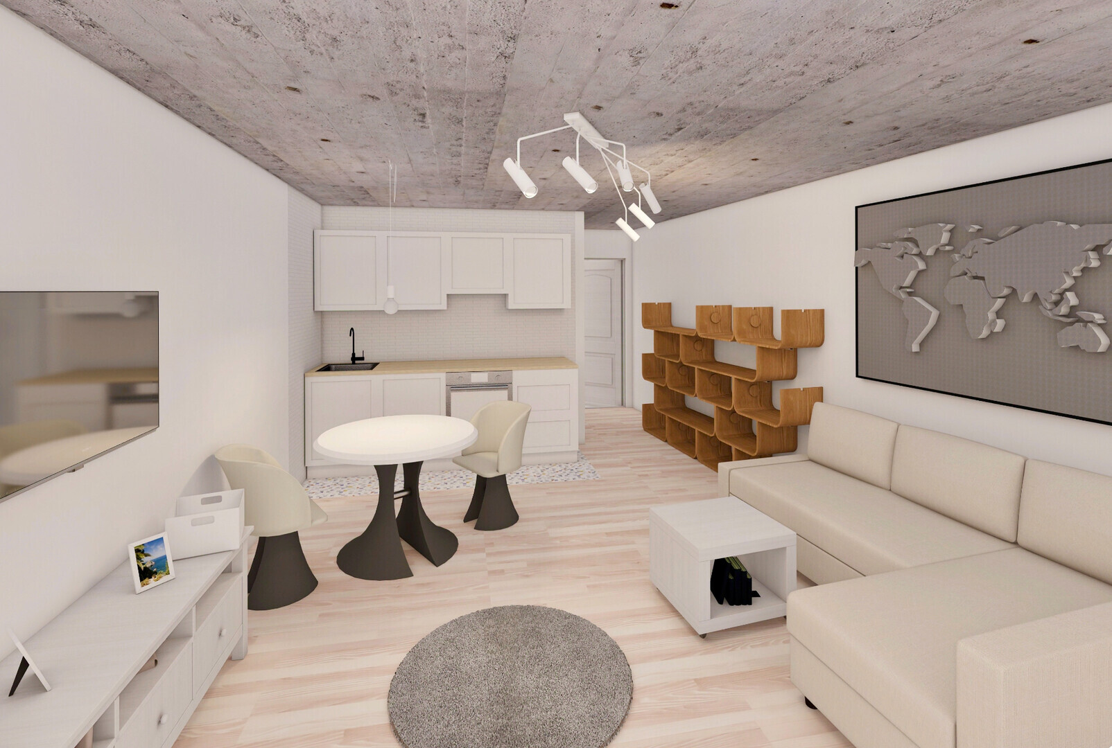 • Mennyezet: látszó beton, lakkozott felület