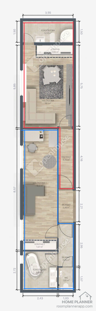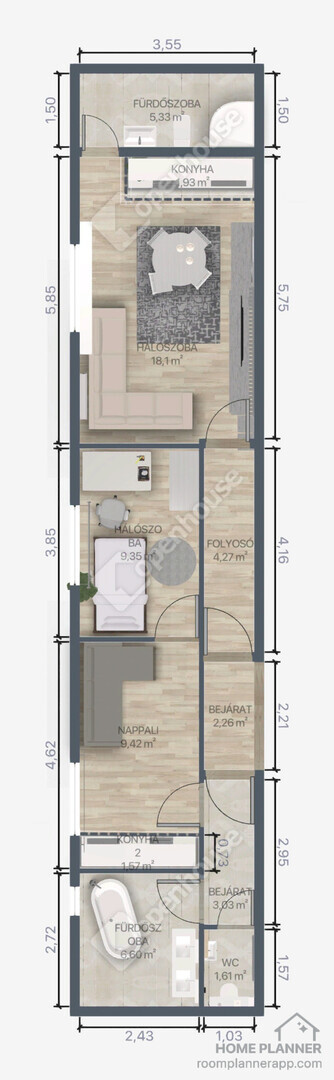 nappali+2 szobás