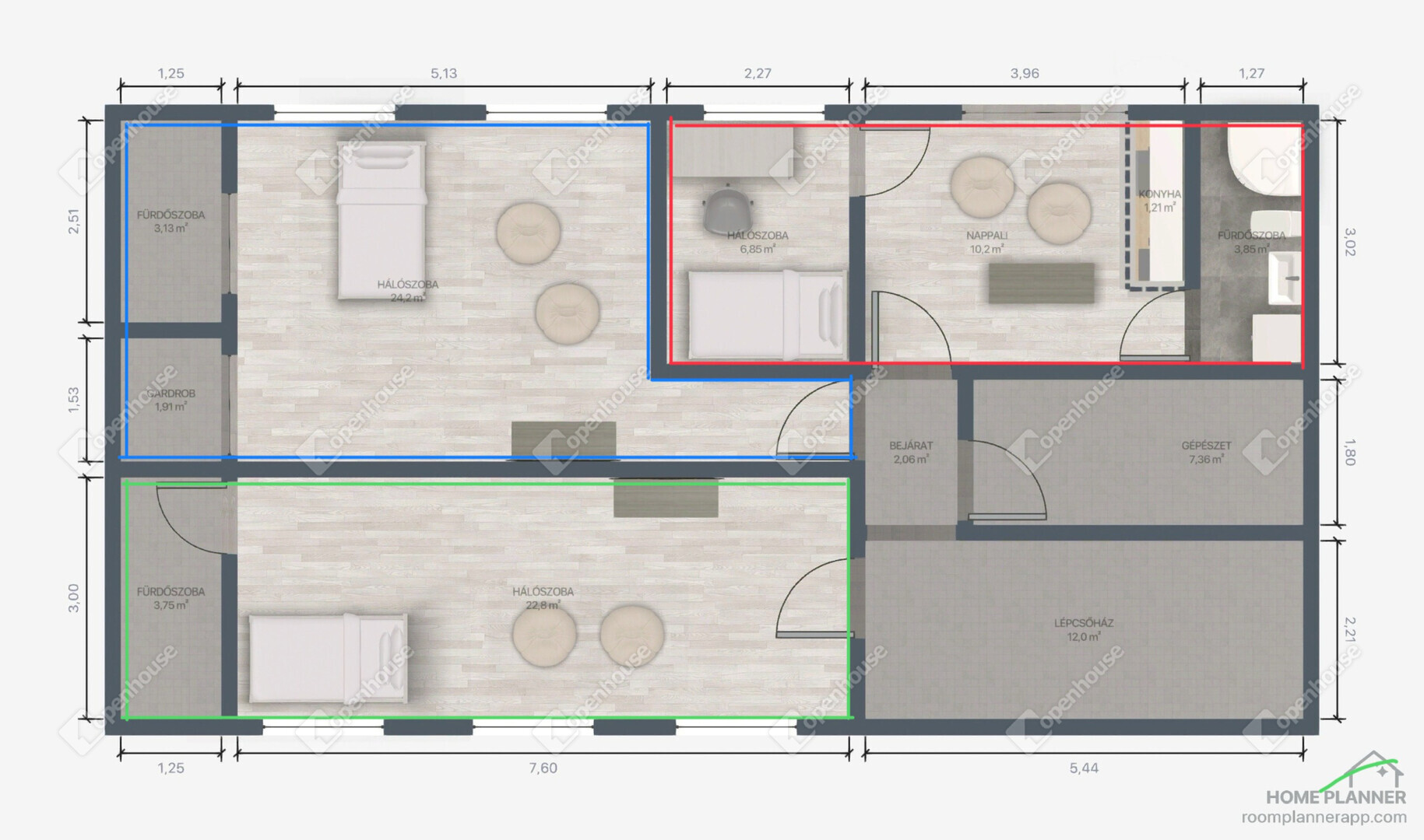 • Padló: Szobákban magas kopásálló Laminált parketta, Vinyl, Spc, Gress kőburkolat, konyha, fürdő,