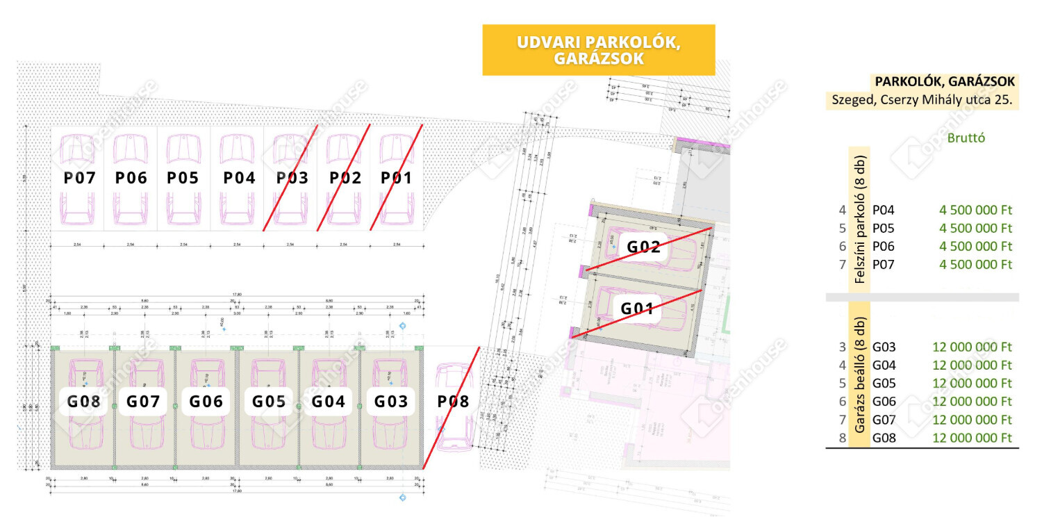 Közösségi extrák: kerékpártárolók, parkolóhelyek és garázsok vásárolhatók.