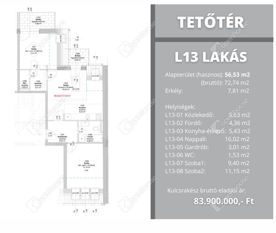 Alapterület: 56,53(72,74) m²