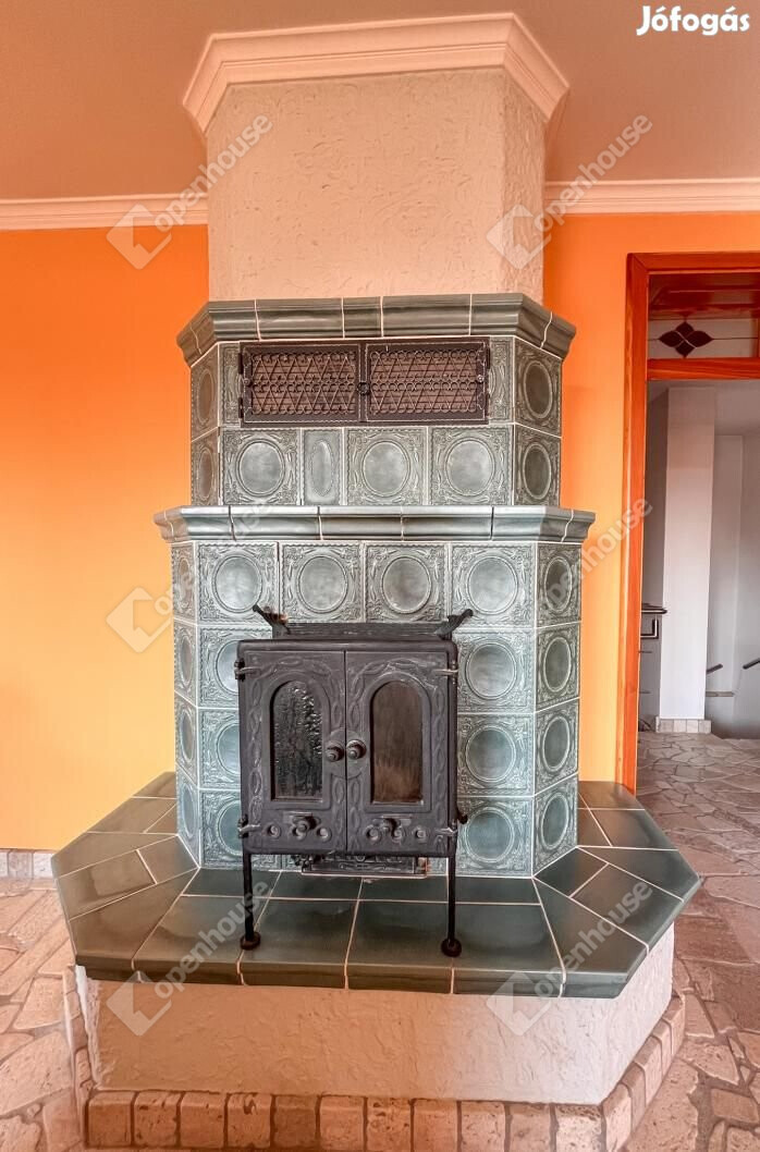 Két szinten egy-egy cserépkályha a kellemes hangulatért és kiegészítő fűtésért