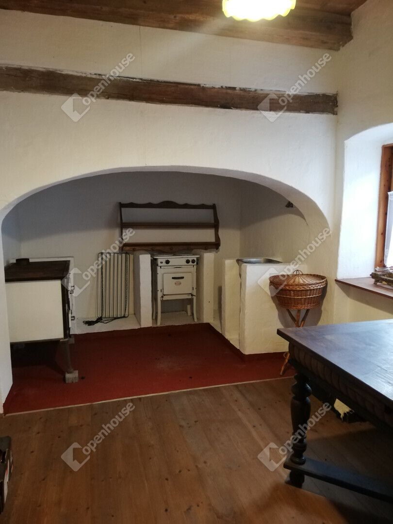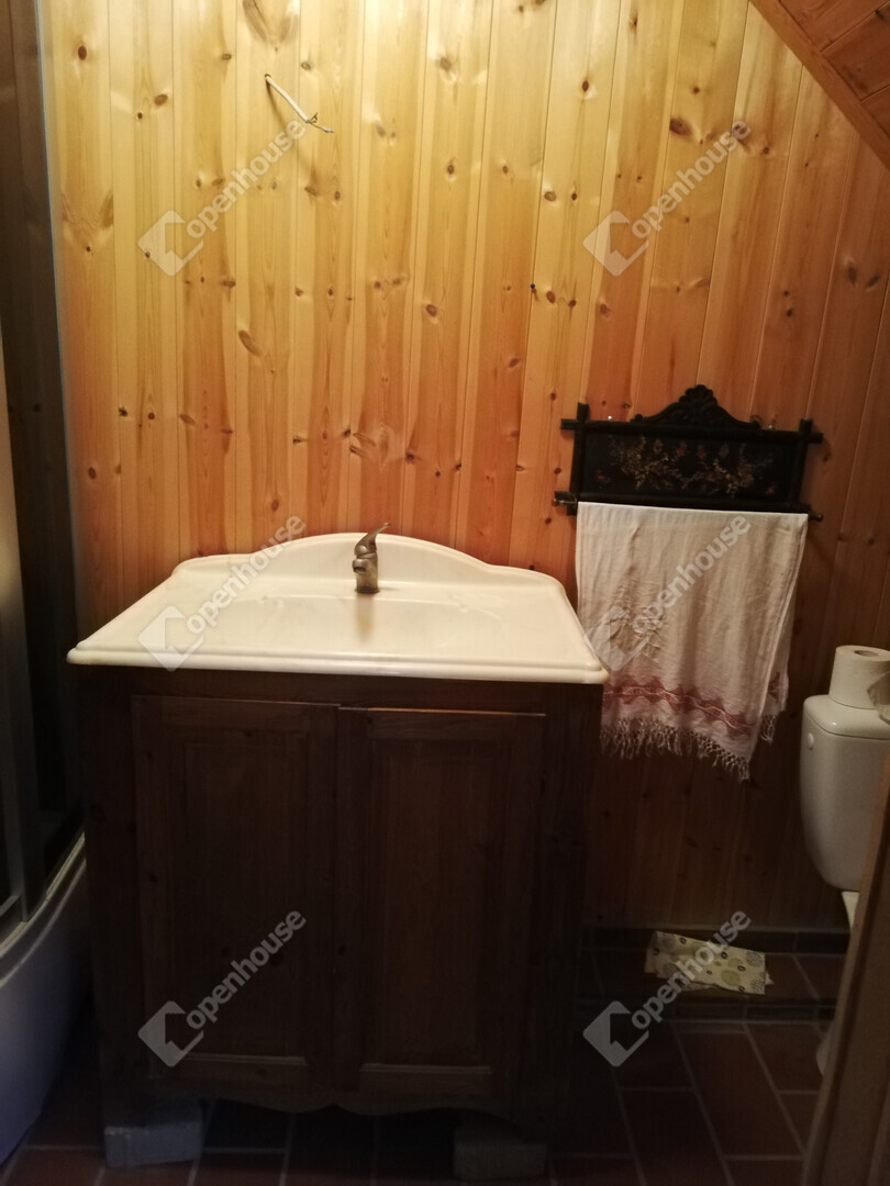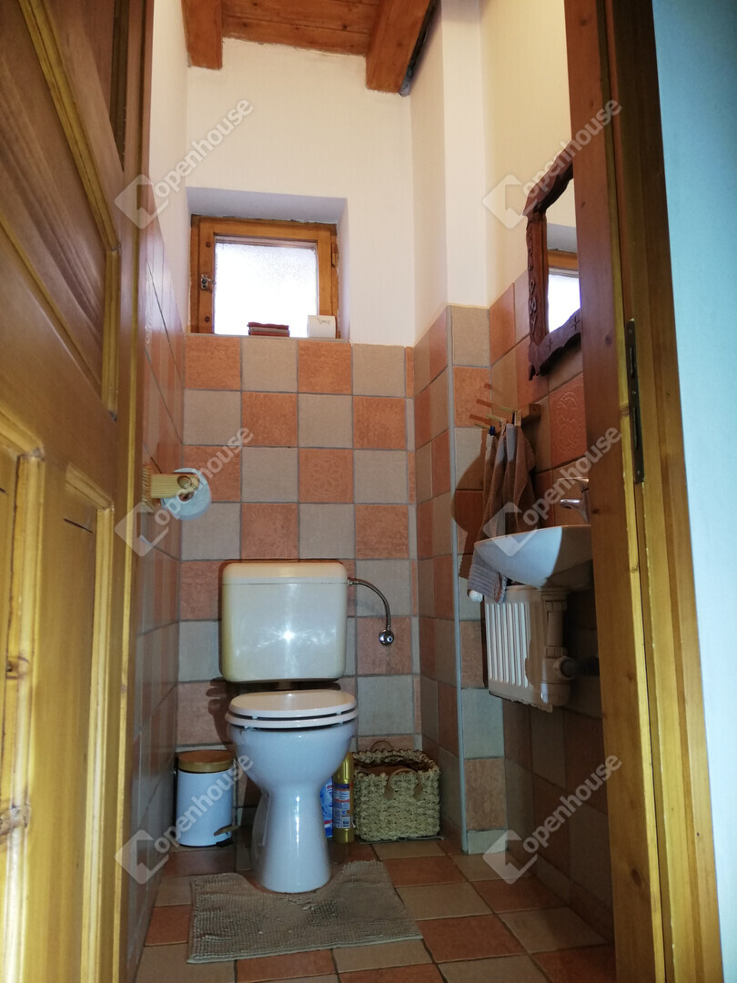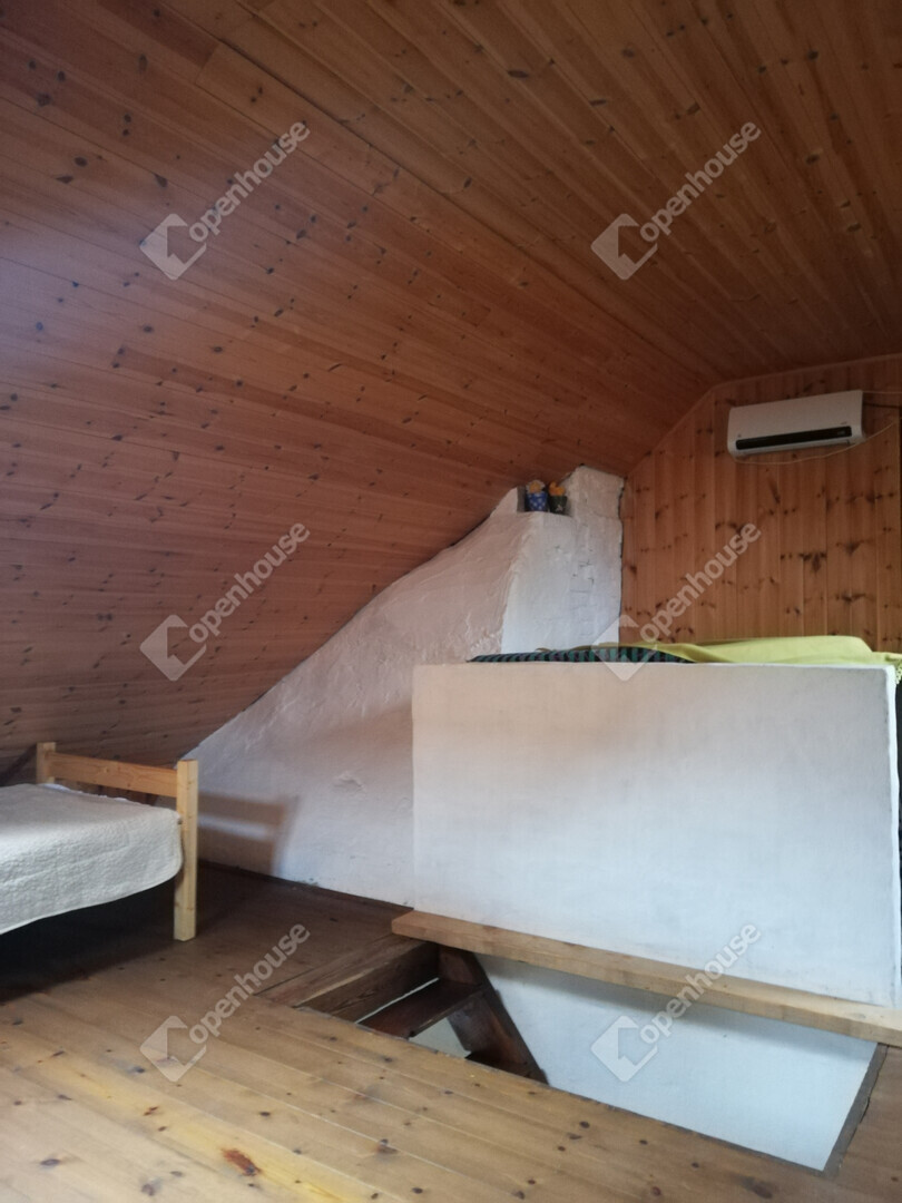 Fűtés: gázkazán radiátorokkal, padlófűtés a fürdőben, valamint egy modern, egyedileg készített cserépkályha a hálószobák között