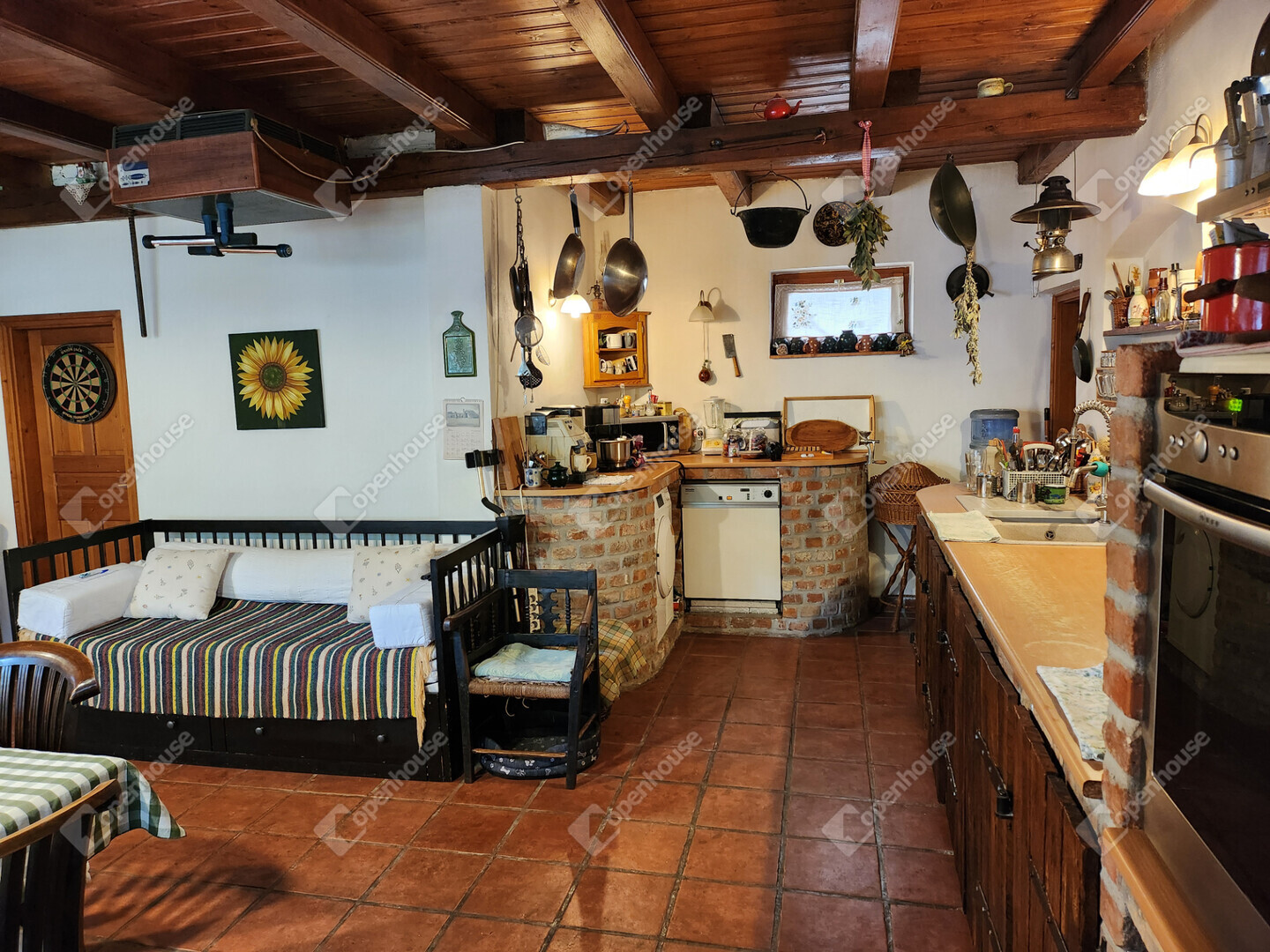 Az egész házban fagerendás mennyezet