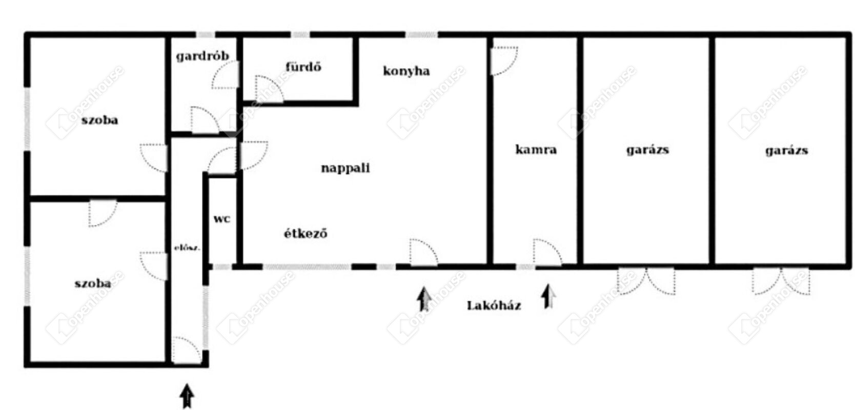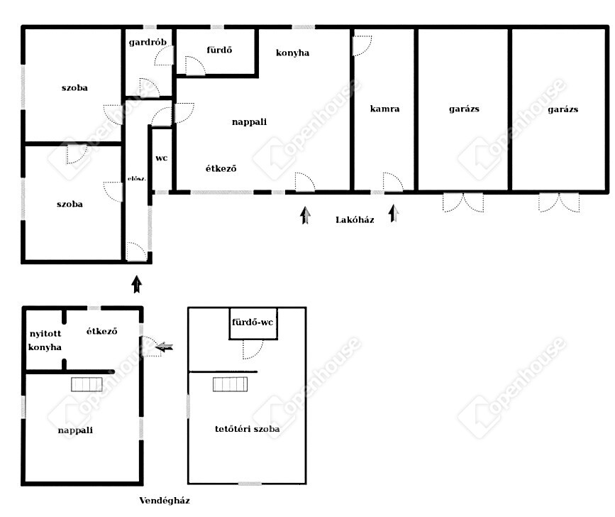 A főépülethez tartozik két 26 m²-es garázs