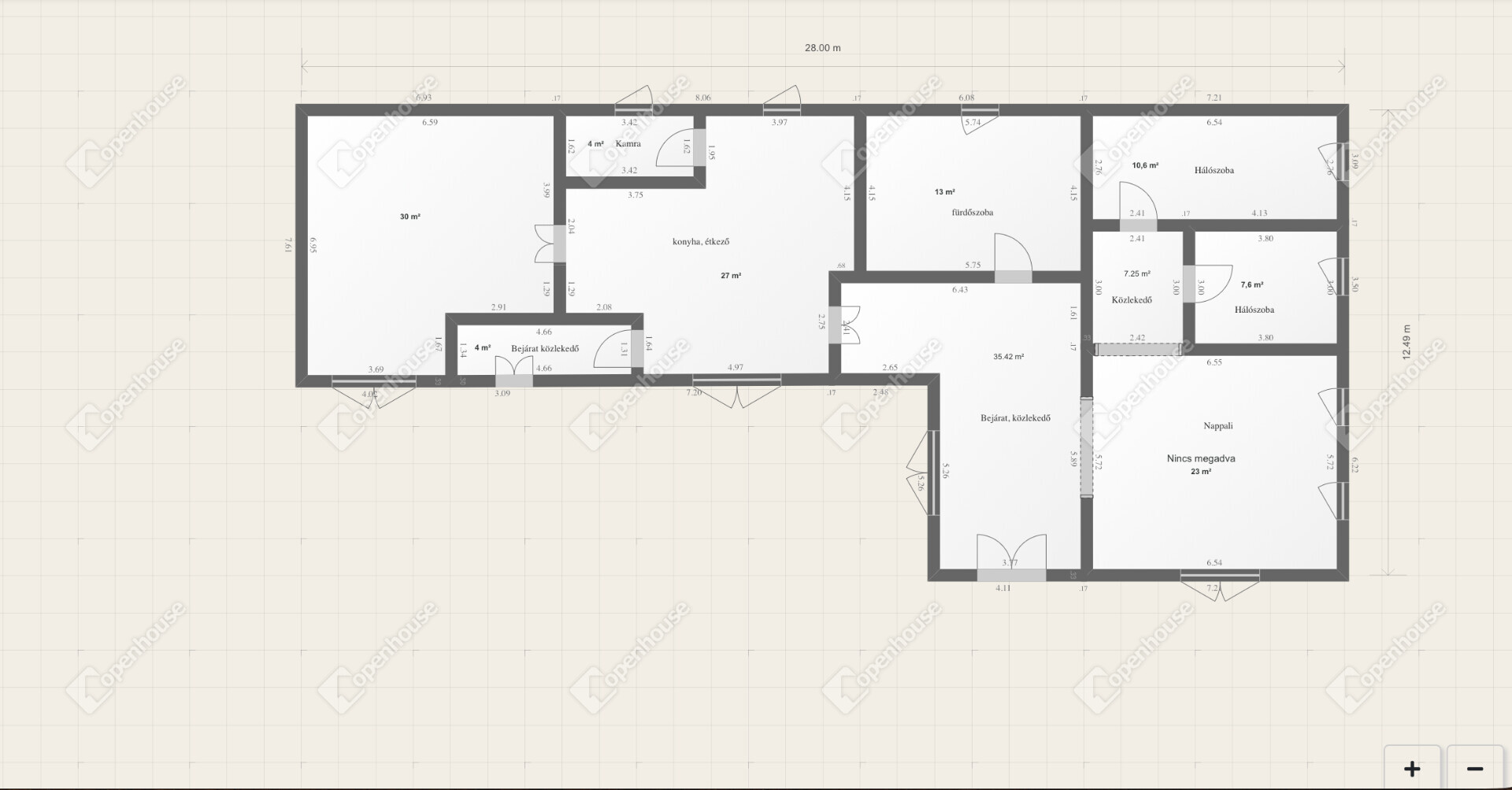 | Amerikai konyha | 27.00 m2 | Járólap |