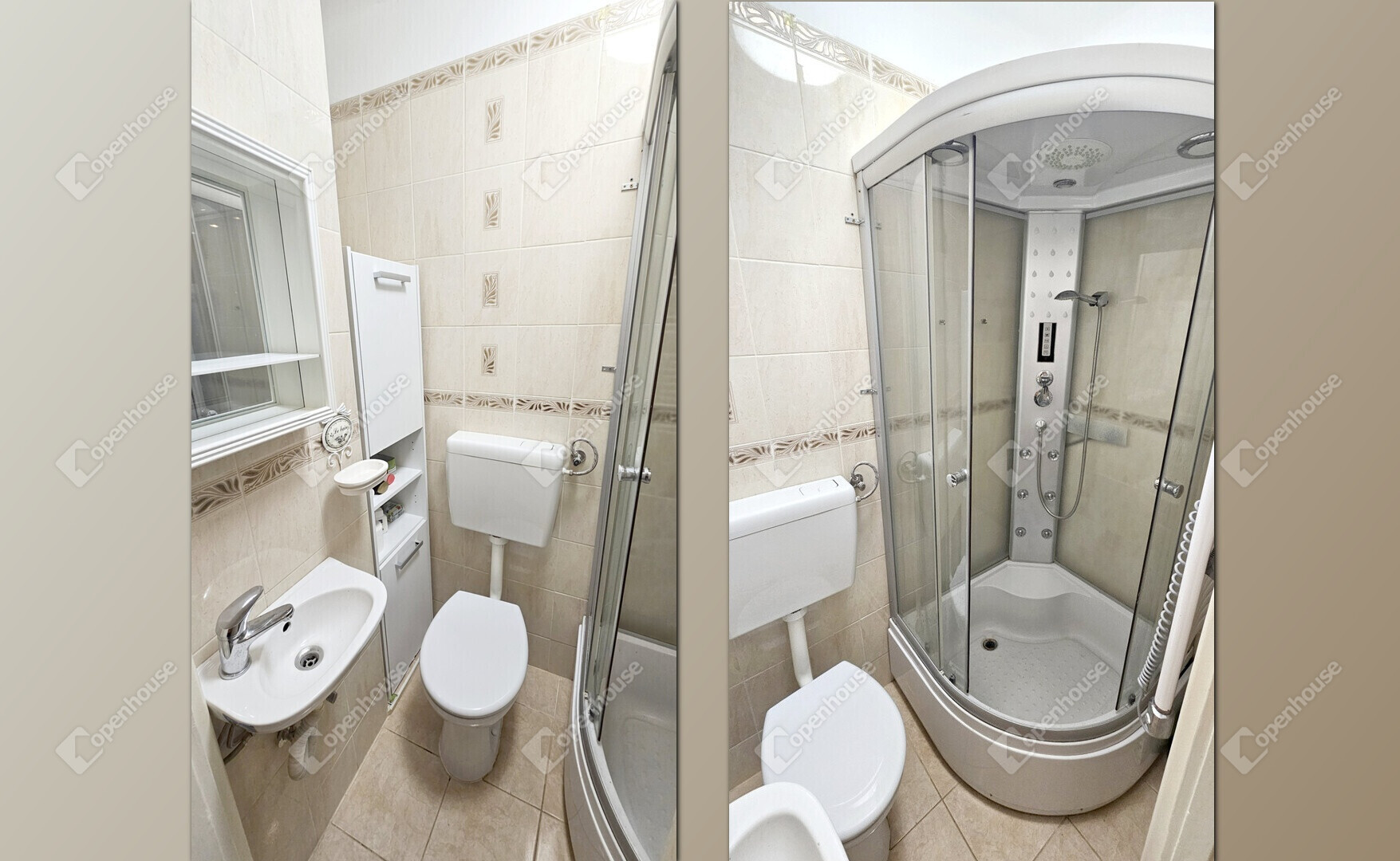 - masszázsfunkciós zuhanykabinnal szerelt, szintén felújított fürdőszoba