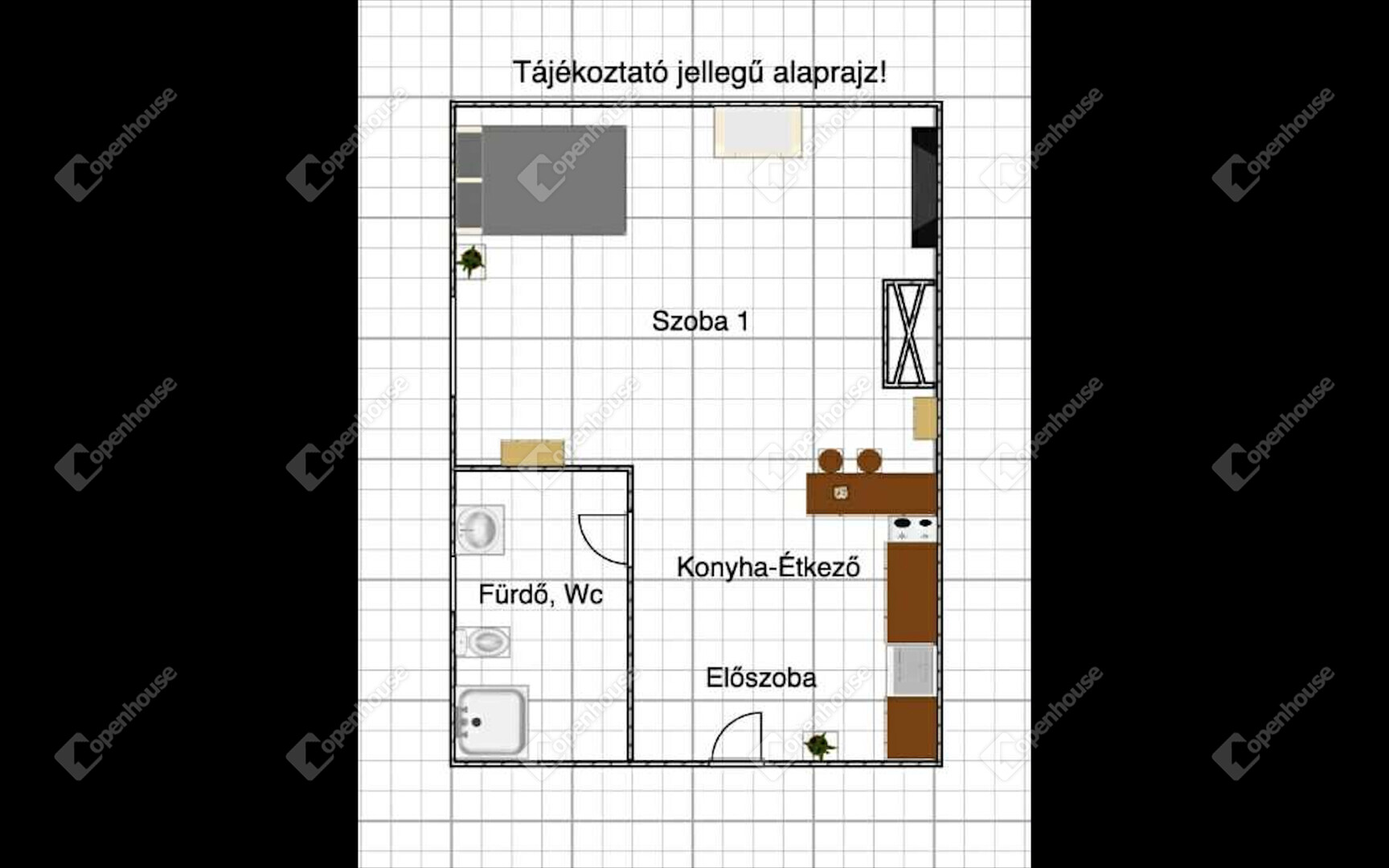 Helyiségek: szoba, konyha-étkező, fürdőszoba