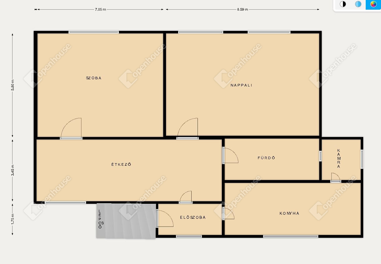 | Konyha | 9.00 m2 | Járólap |