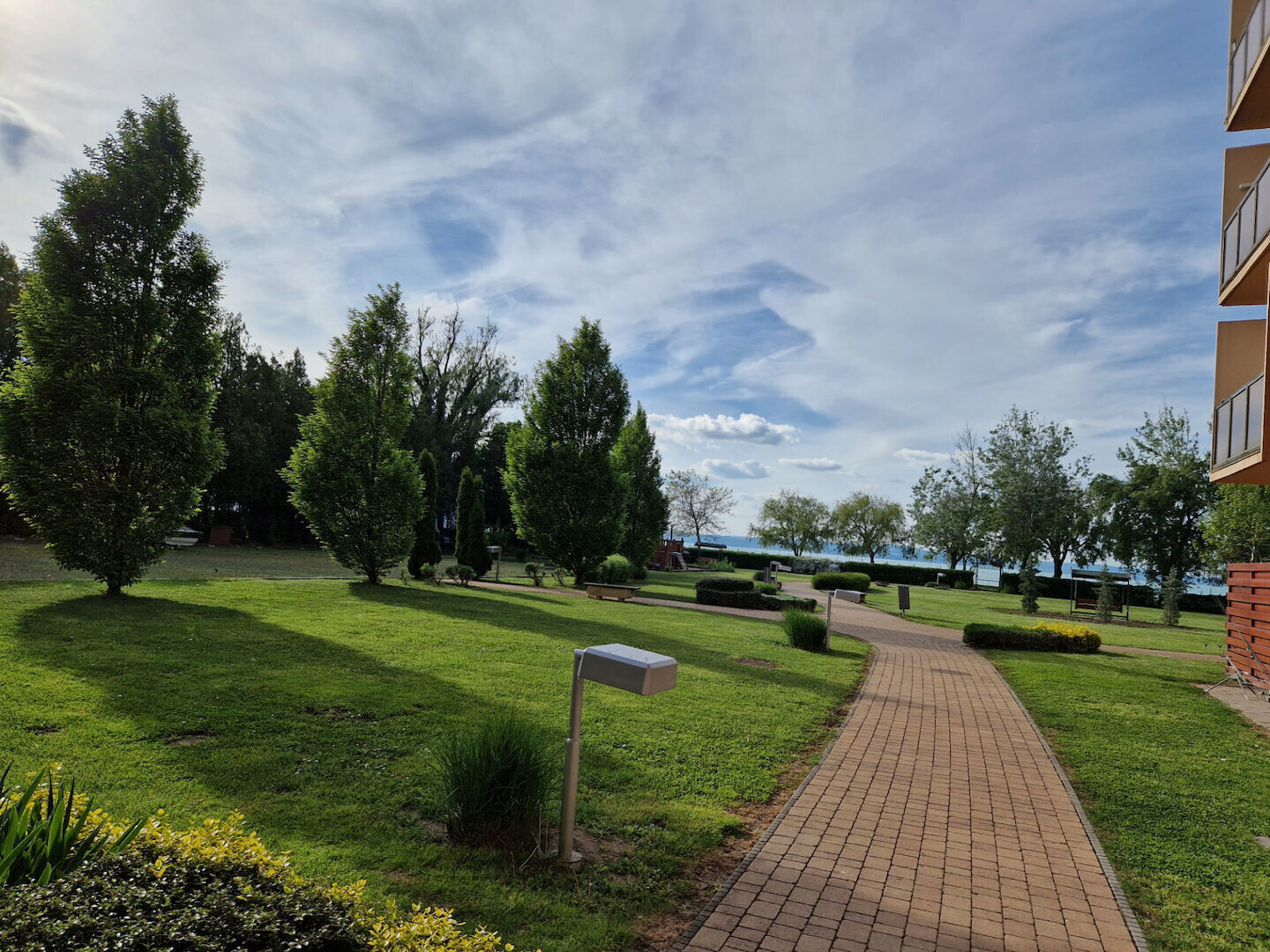 A gyönyörűen gondozott, parkosított kertből kilépve közvetlenül a Balaton hűsítő habja várja!