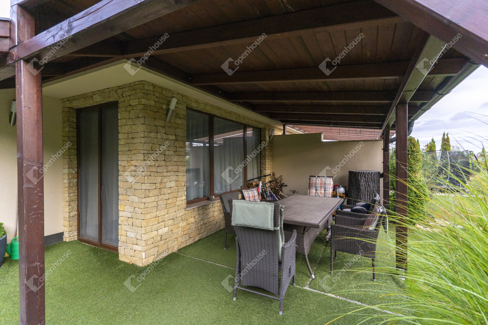 A teraszról nyíló zöldfelület kiváló helyszíne családi reggeliknek, délutáni pihenésnek vagy baráti összejöveteleknek.